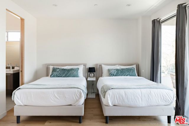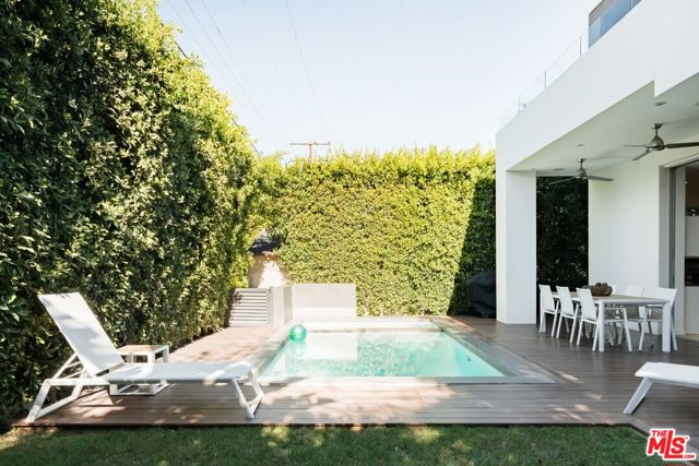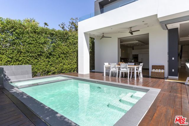 Welcome to this furnished modern home in the heart of Beverlywood. This private and gated bright home features 5 bedrooms, 4.5 baths, pool, spa, state-of-the-art surround sound, Chef's gourmet Kitchen and and four parking spaces. The property can be delivered furnished or unfurnished. You will also find spacious walk-in closets, a laundry room with additional storage and oversized balconies with views. 3 of the 5 bedrooms feature en-suite bathrooms. The other 2 bedrooms share a jack-and-jill bathroom, however, shower and toilet are private from sinks in this bath. 3 of the bedrooms feature large balconies. One bedroom down and four bedrooms up. The yard is completely private and offers a heated salt-water pool and spa. The home also offers a soft water system, filtered drinking water and instant hot water.