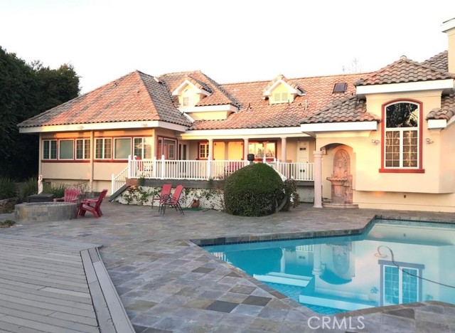 Welcome to South Redlands prestigious hill home with PANORAMIC view. Come to enjoy over 4300 sf of estate living with newer carpet and light fixtures. Entertain your guests with the private pool with over-sized slate tile deck and fire pit. Walk in the backyard koi pond and rose garden. Double front door entrance to the magnificent high ceiling Foyer with a spectacular curved staircase. Adore the elegant second floor wet bar and spacious loft/game room. Admire the impressive cathedral ceilings living room with the grand view of mountain and city lights. Splendid kitchen equipped with beautiful appliances on the granite counters and island. Separate dining room with fabulous chandeliers. Marvelous master suite has walk-in closet, separate access to the sparkling pool and SPA, luxurious marble bathroom and its own second level retreat. All bedrooms are downstairs and there is an office that could be used as the 5th room. Walking distance to the award-winning Mariposa Elementary School. Hurry and relish the estate living. Available NOW.