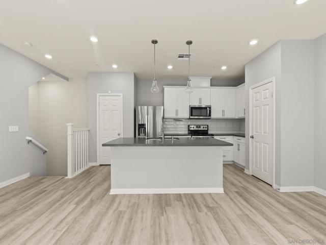 Located in the newer Viewpointe Commons community in San Marcos, this modern 2-bedroom, 2.5-bath condo offers a functional layout with contemporary finishes and low-maintenance living. Spanning approximately 1,237 square feet, the home features an open-concept main level with a spacious living area, dining space, and well-appointed kitchen—ideal for everyday living and entertaining. Both bedrooms are positioned upstairs and feature en-suite bathrooms, providing privacy and flexibility for roommates, guests, or a work-from-home setup. A convenient half bath is located on the main level. Built in 2019, the home offers newer construction with energy-efficient features and a clean, modern aesthetic. Additional highlights include an attached 2-car garage, in-unit laundry, and a well-maintained community setting. Centrally located with easy access to shopping, dining, and major freeways, this home offers a great balance of comfort and convenience.
