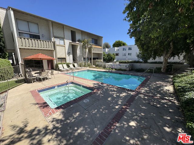Bright and inviting 1 bedroom, 1 bathroom condo in a desirable Tarzana location. This unit features high ceilings that create an open, airy feel, along with a comfortable living space filled with natural light, a cozy fireplace, and a private balcony perfect for relaxing. The kitchen offers ample cabinet space and flows nicely into the living and dining areas, making the layout both functional and welcoming. The bedroom is well-sized with generous closet space, and the bathroom is well maintained. This unit also offers a dual washer and dryer in unit and additional community laundry. The gated community is quiet and beautifully kept, with plenty of greenery throughout. Residents also enjoy access to amenities including a pool, jacuzzi, and clubhouse. Additional features include 2 tandem parking spaces with overhead storage for extra convenience. Located close to shopping, dining, and easy freeway access, this condo offers a great balance of comfort and convenience.