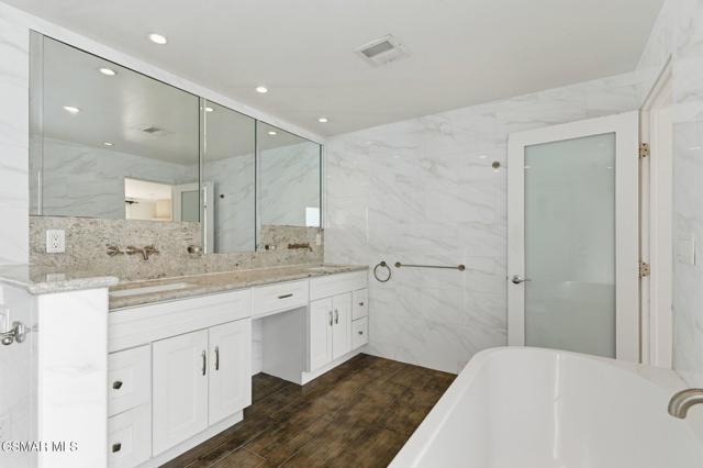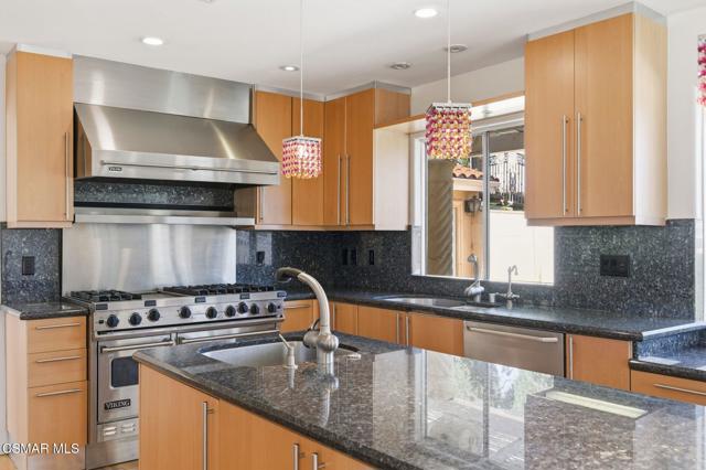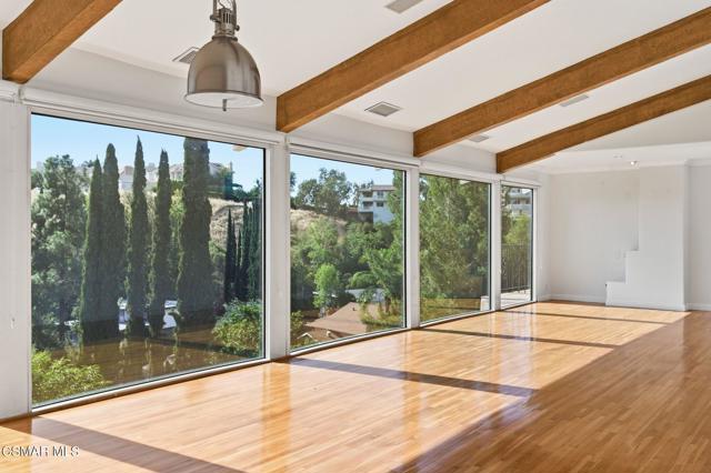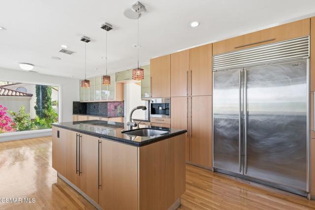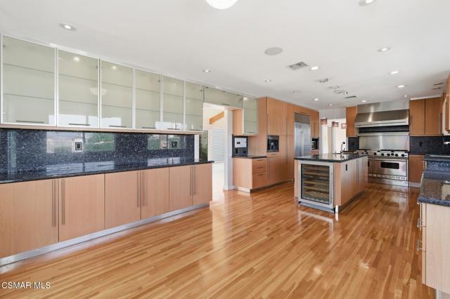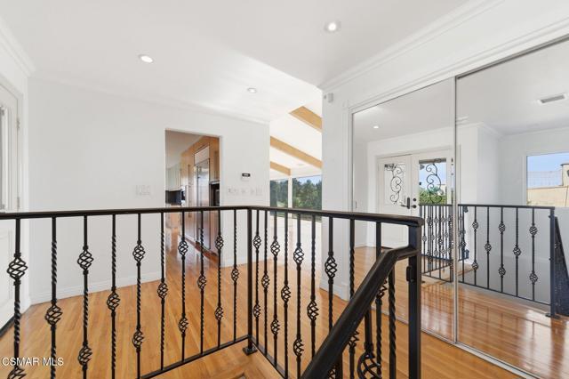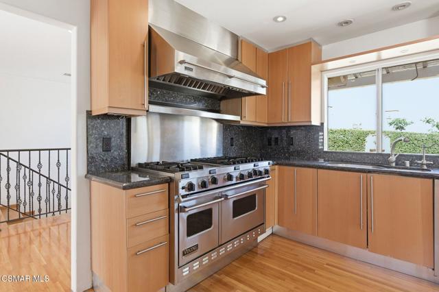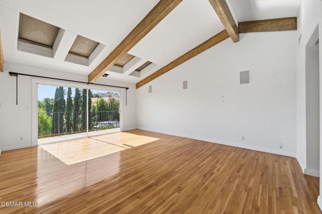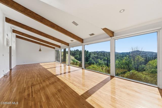 Gated View Home South of Ventura Blvd!Set on a private cul-de-sac adjacent to The Heights in Woodland Hills, this stunning 4-bed, 3-bath home (plus bonus room) offers 3,150 sq. ft. of luxurious living with breathtaking 360 views. Light and bright throughout, featuring vaulted ceilings, floor-to-ceiling windows, hardwood floors, recessed lighting, and designer finishes.The modern chef's kitchen boasts a large island with prep sink, Viking 6-burner range with griddle and dual ovens, Sub-Zero refrigerator, Miele espresso maker, wine fridge, and breakfast nook. The primary suite includes a fireplace, walk-in closet, private viewing deck, and spa-like bath with soaking tub, dual vanities, and oversized rain shower.Enjoy sweeping views of the Santa Monica Mountains, updated landscaping, and a prime location near top-rated schools. A rare opportunity for luxury and privacy with endless views!