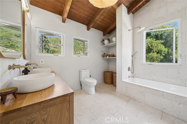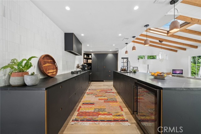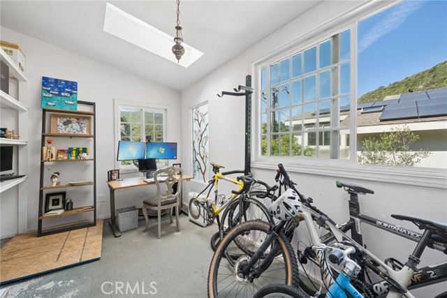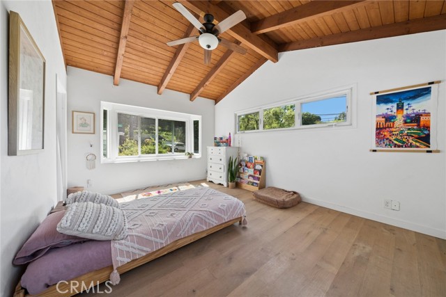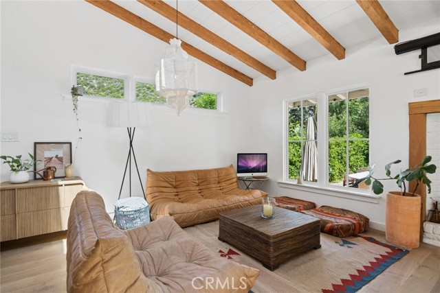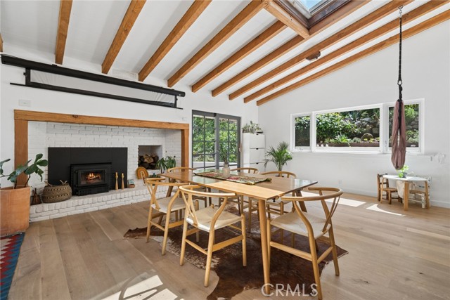 Tucked into the serene enclave of Canyon Acres, a quiet, no-through-traffic community, this beautifully remodeled, fully furnished home is a rare opportunity to truly live immersed in Laguna Beach, not just visit it. Set on nearly a third of an acre shaded by large, mature oak trees and surrounded by lush gardens, the property offers a sense of privacy and natural beauty that's increasingly hard to find. Canyon hill views stretch from the main living areas and the upstairs master suite, where a dedicated ensuite office makes working from home feel like anything but work. Inside, the home is warm, clean, and considered; soaring beamed ceilings, rich wood floors, and a wood-burning fireplace give the main living space a grounded, organic character that's both elevated and livable. The kitchen is equipped with a reverse osmosis water system with electrolyte re-addition, because the details here actually matter. The floor plan flows intuitively; a private guest bedroom on the main level offers flexibility and separation, while two bedrooms upstairs, including the master retreat with views and an ensuite office, provide a quiet retreat from the rest of the home. A separate ADU on the property adds yet another layer of versatility - ideal for a home office, studio, or creative space. Rounding it out: a dedicated laundry room, a barrel sauna, solar and driveway parking for three. Step outside and the property opens up — expansive, private outdoor spaces made for morning coffee under the oaks and long evenings around the fire. Direct trail access from the neighborhood connects to Laguna's beloved hiking network all the way up to Top of the World. And the location delivers on every front. Walk to the Sawdust Festival, Pageant of the Masters, Downtown Laguna, the Laguna Beach Beer Company, and some of the best dining and shopping on the coast. Easy freeway access keeps Newport Beach and beyond well within reach. Pet friendly. Flexible on lease length.