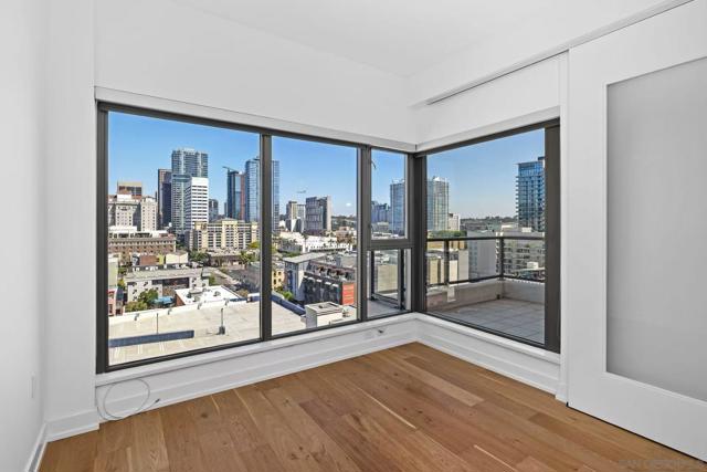 Modern urban living at Alta in the heart of Downtown San Diego. This desirable north-facing residence features high ceilings, abundant natural light, and expansive floor-to-ceiling windows with beautiful city views. The open-concept floor plan showcases French oak hardwood flooring, a spacious living and dining area, and a rare oversized private balcony ideal for relaxing or entertaining. The gourmet kitchen is appointed with stone countertops, frosted glass accents, and premium appliances, blending style and functionality.The bedroom offers floor-to-ceiling windows, a generous walk-in closet, and a spacious bathroom with a soaking tub and slate finishes. Additional interior highlights include central A/C, full blackout roller shades, and an in-unit washer and dryer.Residents enjoy resort-style amenities including a fitness center, pool, spa, resident lounge, gated entry, professional security, and well-maintained common areas. The home also includes an assigned parking space and private storage.Move-in ready with excellent walkability and convenient access to dining, shopping, parks, and major downtown attractions. Information provided is deemed reliable but not guaranteed. Buyer and buyer’s agent are advised to independently verify all information