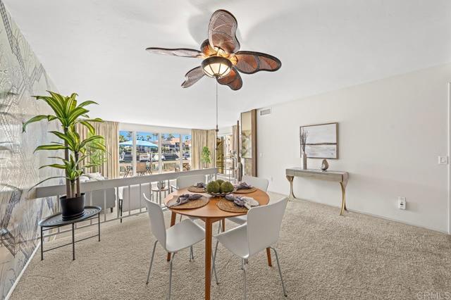 Experience the best of coastal living in this beautifully appointed 2-bedroom, 2-bath residence in the sought-after Coronado Cays. This spacious ground-level home offers approximately 1,671 square feet of thoughtfully designed living space, highlighted by a generous Living Room with a cozy fireplace and expansive wall-to-wall windows that seamlessly overlook the private waterfront patio. A dedicated Dining area and convenient wet bar create an ideal setting for both relaxed living and effortless entertaining. A modern kitchen blends style and function, while the stunning Primary Suite serves as a true retreat—featuring its own fireplace, a large en suite bath with dual sinks, a walk-in closet, and a separate sitting area with tranquil views of the adjacent boat slips. There is a full-size Guest Bedroom offers abundant closet space and direct access to the second bathroom, providing comfort and privacy for guests. Step outside to your private back patio overlooking the San Diego Bay access channel and private boat slips—including one deeded exclusively to the property—perfect for enjoying San Diego’s signature afternoons, evenings, and unforgettable sunsets. Additional highlights include a private one-car garage, a deeded covered carport, and ample guest parking. Residents enjoy access to the community pool, spa, and clubhouse, all set within beautifully maintained grounds. Ideally located within the Coronado Cays, this exceptional home is just a short stroll away from breathtaking views of San Diego’s iconic skyline. A rare opportunity to enjoy waterfront living with comfort, style, and convenience.