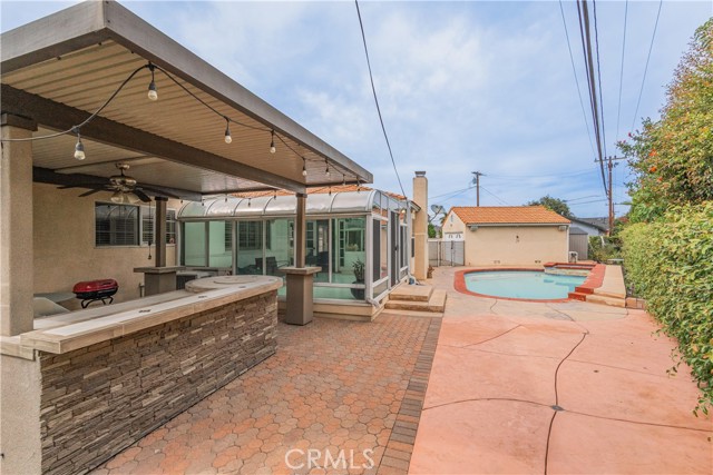 Welcome to this beautiful 4-bedroom, 2.5-bath pool home located on a quiet cul-de-sac in the desirable North Downey neighborhood. This light-filled home offers comfort, privacy, and great space for entertaining. Inside, you’ll find a bright formal living room that leads into a remodeled kitchen with quartz countertops, gray cabinets, stainless steel appliances, and a large island with seating. The kitchen opens to a cozy family room with a fireplace and French doors, creating a great indoor-outdoor flow. A sunroom overlooks the sparkling pool and spa, along with the BBQ entertaining area, making it the perfect spot to relax. The primary bedroom has direct access to the backyard and its own half bathroom. There are three additional bedrooms, a full bathroom with dual sinks, and a third bathroom with a shower that also works as a pool bath. The backyard is perfect for entertaining, featuring a sparkling pool and spa, BBQ area, outdoor bar, and plenty of space to enjoy. There’s also a detached 2-car garage and a long driveway for extra parking. Conveniently located near shopping, dining, and Porto's Bakery & Cafe, this home has everything you need.