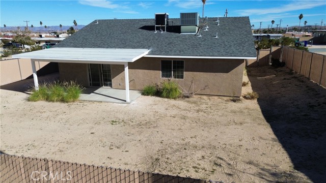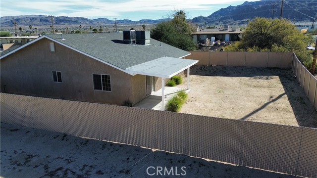 Welcome to your desert retreat in the heart of 29 Palms. This single story 3 bedroom 2 bathroom home is move-in ready with tasteful upgrades. The home showcases modern finishes with recessed lighting and ceiling fans throughout as well as being freshly painted inside and out and newly installed luxury vinyl plank flooring, also a brand new water heater has been installed. The open concept kitchen and living area flow effortlessly creating a bright functional space ideal for everyday living or entertaining guests. when you step outside to the backyard where you have a covered patio perfect for grilling or taking in the beautiful desert sunrises and sunsets. Just minutes from the Marine Corps Base as well as shopping, dinning, outdoor recreation, and the Joshua Tree National Park. This home is turnkey and ideal for first time home buyers, military families, or anyone looking to enjoy the tranquil High Desert lifestyle. All this can be yours using a USDA loan with zero down and seller is wiling to help with buyers costs.