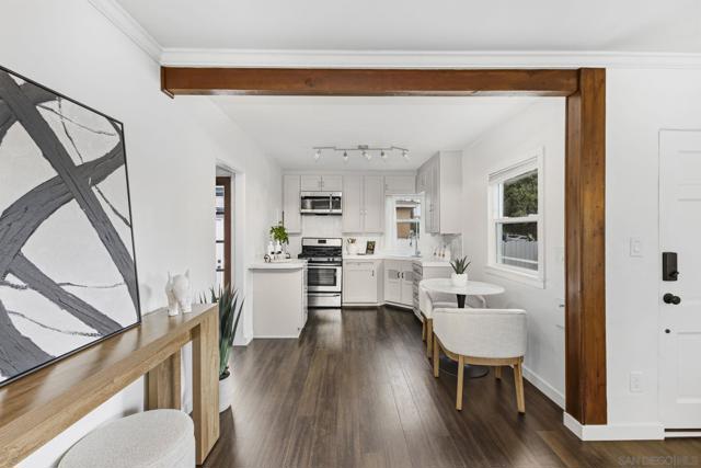 Welcome to City Heights living with this charming detached single-family home full of natural light! Perfectly positioned on a corner lot, this 1-bedroom, 1-bath residence offers thoughtfully designed living space with the privacy and independence of a standalone home. Freshly painted inside and out - including the kitchen cabinets - this move-in ready property blends character, comfort and convenience. This home has beautiful LVP flooring, mini-splits for both heating & cooling, tankless water heater and a large bedroom with office nook. Recent foundation repairs provide added peace of mind, while abundant light from dual pane windows creates a bright and welcoming space. Step outside to enjoy the fully fenced yard, ideal for pets, gardening, entertaining or simply relaxing. A rare bonus in this price point, the property also features a 1-car detached garage plus driveway parking for 2-3 additional vehicles. Conveniently located near major freeways including the 15, 805 & 94, commuting around San Diego is a breeze. Enjoy close proximity to neighborhood restaurants, coffee shops, grocery stores, parks and all the everyday conveniences that make City Heights one of San Diego’s most centrally located communities. Whether you're a first-time buyer, investor or someone seeking an affordable detached home with outdoor space and parking, this is an opportunity you won’t want to miss.