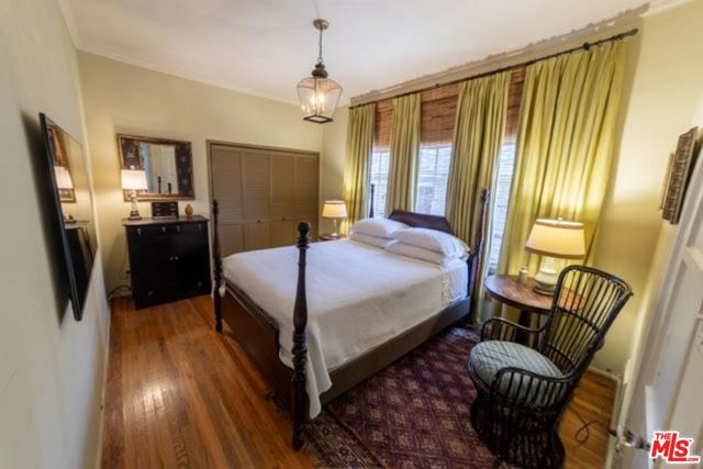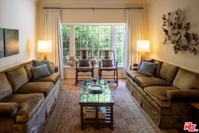 FABULOUS FULLY FURNISHED APARTMENT IN A PRISTINE, COVETED 1936 BEVERLY HILLS COURTYARD BUILDING. PRIVATE ENTRY THROUGH GARDEN COURTYARD. HIGH CEILINGS (9' +) WITH ORIGINAL CROWN MOLDINGS & HARDWOOD FLOORS THROUGHOUT. LARGE LIVING ROOM & FORMAL DINING BOTH WITH LARGE PANED WINDOWS VIEWING TREES & OVERLOOKS COURTYARD; CHARMING CONVERTIBLE DEN/OFFICE W/ CONVERTIBLE SOFA BED & WALL-MOUNTED TV; GREAT KITCHEN HAS ALL ACCESSORIES INCLUDING FINE CHINA & VINTAGE SILVER PLUS ALL COOKING EQUIPMENT; BEAUTIFUL BEDROOM WITH MOUNTED T.V., ANTIQUES & FINE LINENS. ALL ROOMS HAVE ORIGINAL ART AND THE FINEST FURNISHINGS & DETAILS. TRULY FEELS LIKE A HOME. CENTRAL AIR & HEAT. ON BEAUTIFUL TREELINED STREET. WALK TO BEVERLY HILLS & CENTURY CITY SHOPS & RESTAURANTS.