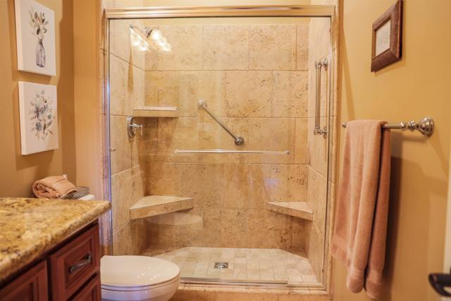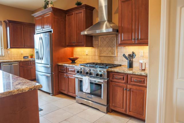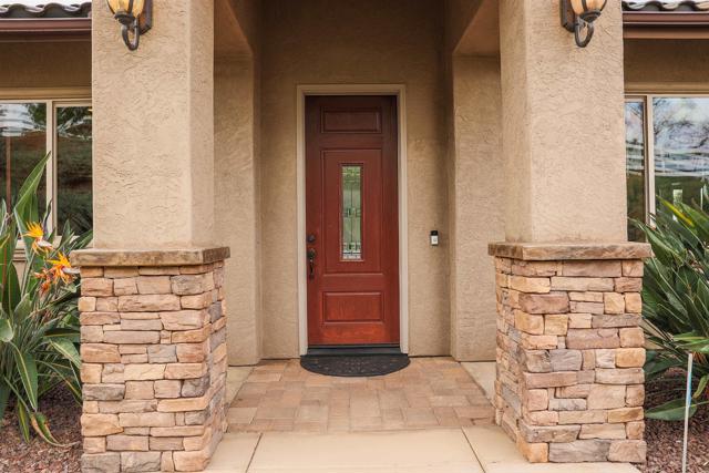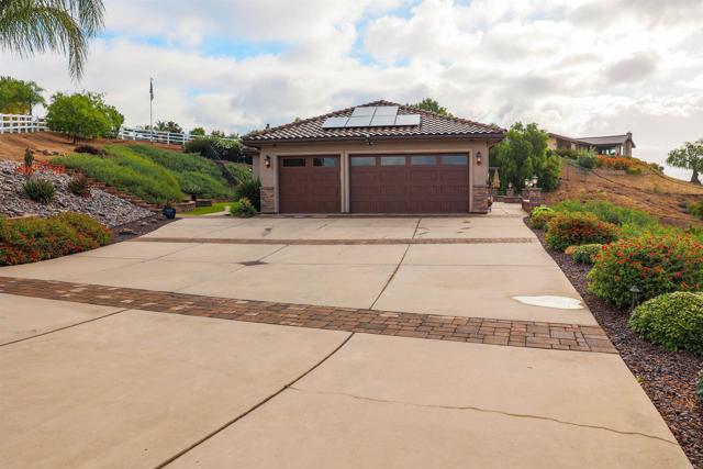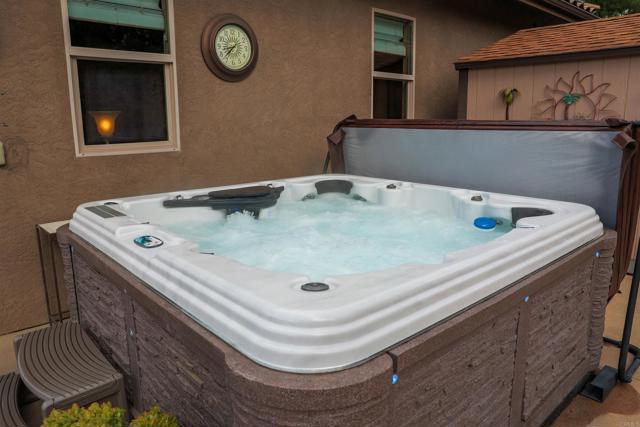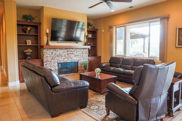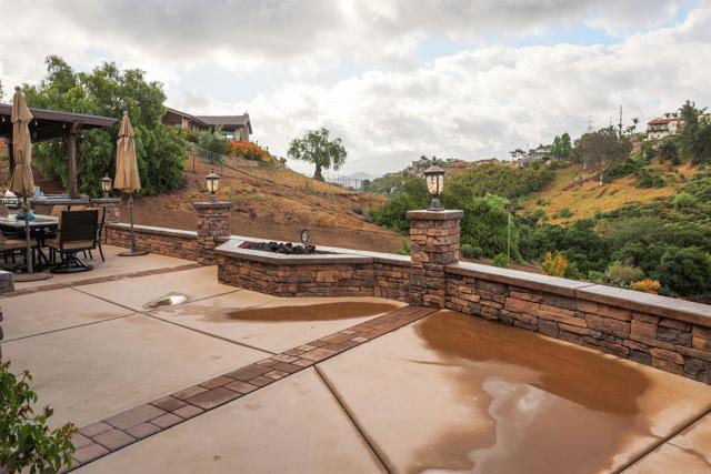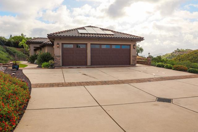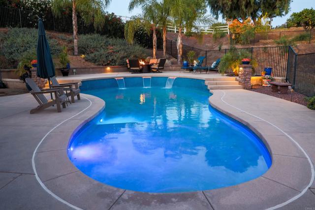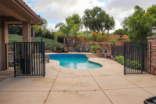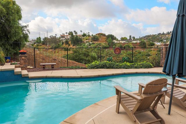 Experience elevated East County living in this exceptional home designed for both relaxation and unforgettable entertaining. Perched to capture stunning eastward views, this property offers the perfect blend of indoor and outdoor luxury and comfort. Step outside to your private backyard oasis featuring a resort-style pool with ambient lighting, an expansive patio, and a fully equipped custom outdoor kitchen. Fully covered, the oversized island provides seating for 10 or more, making it ideal for hosting gatherings of any size. Enjoy evenings around the firepit overlooking the canyon or take advantage of the built-in barbacoa pit—perfect for large BBQs and celebrations. The home is beautifully landscaped with an assortment of mature fruit trees, accent lighting, artificial turf, and a full irrigation system for easy maintenance. An oversized driveway and finished 3-car garage provide ample parking and storage, along with an included Tuff Shed for pool equipment and tools. Inside, the open-concept floor plan is filled with natural light from large windows and showcases high-end finishes throughout. The chef’s kitchen is equipped with premium appliances and flows seamlessly into the living and dining areas—perfect for modern living. The home features 3 bedrooms which includes a spacious primary suite along with an optional 4th bedroom or office. Elegant travertine and engineered wood flooring run throughout, adding warmth and sophistication. Additional highlights include paid solar for energy efficiency and long-term savings. This is a rare opportunity to own a turnkey home that truly has it all—luxury, functionality, and breathtaking views in one of East County’s most desirable settings. This one is definitely one you do not want to miss!