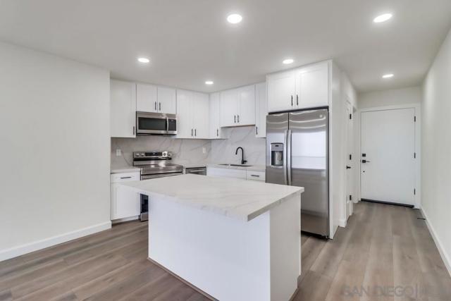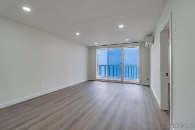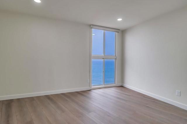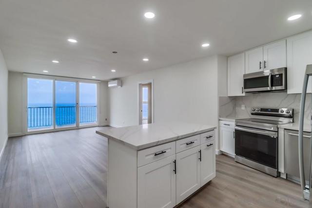 Newly upgraded ocean front property hosts incredible views with private patio in gated community with elevator. Recessed lighting, hard flooring and open concept living area. Brand new kitchen with matching stainless appliances, built in microwave, farm sink and large island. Primary bedroom offers white water views as well, with mirrored closet doors, a/c and en suite. Community laundry. Walking distance to restaurants, farmers market, sunset cliffs hiking and more!