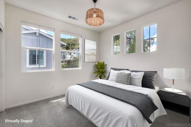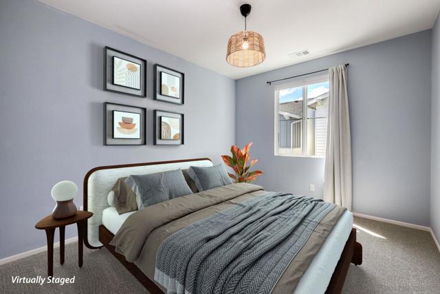 LOCATION, LOCATION, LOCATION! This rare corner private lot was built in 2023, and this beautifully appointed all-electric home offers 1,818 square feet of modern living with 3 bedrooms, 2.5 bathrooms, plus a spacious loft. Thoughtfully designed with both style and efficiency in mind, this nearly new residence presents an incredible opportunity to own a turnkey move-in-ready home with valuable upgrades already in place, without the added expense or wait of new construction! The open-concept main level is filled with natural light and features luxury vinyl plank flooring throughout the living and dining areas. The kitchen is both functional and refined, highlighted by a large island coupled with stainless steel appliances and a stylish tile backsplash. The seamless flow makes everyday living and entertaining effortless. A convenient powder room and direct access to the spacious attached 2-car garage with EV charger complete the first floor. Upstairs, the generous primary suite features a walk-in closet and private ensuite bath. Two additional bedrooms, a full bathroom, an upstairs laundry room, and a versatile loft provide the flexibility to create a home office, media room, or play space to fit your lifestyle. Additional highlights include homeowner-owned solar, modern all-electric systems, and a fenced private backyard. Residents also enjoy access to resort-style community amenities including a pool, spa, and children’s play area. Stylish, energy-efficient, and thoughtfully upgraded, this home offers comfort, convenience, and exceptional value in today’s market.
