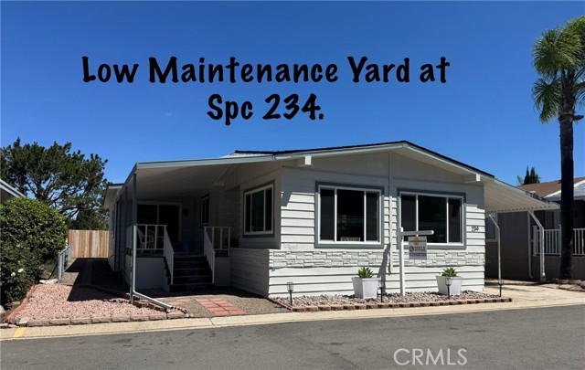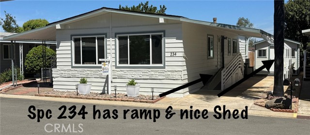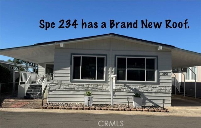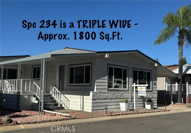 IF YOU WERE LOOKING FOR AN ALMOST BRAND NEW HOME, THIS 1800+ SQ FT 2BR 2 BA MAY BE THE ANSWER. TAKE A LOOK AT THE PHOTOS. From THE BRAND-NEW ROOF, TO THE REMODELED MASTER BATHROOM; and UPDATED KITCHEN & ALL BRAND NEW APPLICANCES, THE NEW FORCED AIR FURNACE, THE CUSTOM PAINT INSIDE & OUT, THESE IMPROVEMENTS & PLUS MORE UPGRADES have given this 1978 manufactured home BRAND NEW LIFE. In addition. It has Double Paned Windows, a LARGE WAIK IN CLOSET in the Master Bedroom and resealed GUEST BATHROOM & KITCHEN COUNTERTOPS. The home has VERY LOW MAINTENANCE LANDSCAPING, but there is enough property if a Buyer wanted more greenery. There is an ENTRANCE RAMP on the carport side. And the CARPORT HAS BEEN EXPANDED. The SHED is a real plus. Recently the BOTH THE SHED FLOOR & FRONT PORCH FLOORS were repaired and strengthened. The Seller is providing upfront a SECTION 1 CLEARANCE & a HOME WARRANTY. Where is this BEAUTIFUL HOME. It is in the Casa de Amigos 55+/30 Senior Park which means one person living in the home must be 55 but another person can live there if 30 or older. In the Park you will find wonderful walking paths, tall fir trees and large boulders that line the paths of the Park. This home is on property tax and you rent your space. Please contact the office at 760-294-6039 open Mon- Fri. (Not on Wed’s) 9 am to 2pm for exact space rent cost and other Park qualifications. Hope to see you soon visit this BEAUTIFUL PARK & HOME.