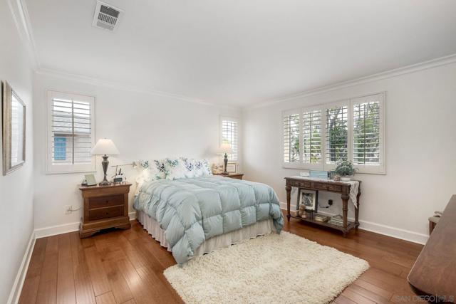 Welcome to this beautifully maintained & upgraded Plan 1 residence in the highly desirable Stratford Place community. Original owner first time on the market! Nestled on a premium corner lot, this 3-bedroom, 2.5-bathroom home spans approximately 1,346 sq ft and combines thoughtful, modern upgrades with timeless style. Step inside and be greeted by an abundance of natural light and beautiful Armstrong pre-engineered hardwood flooring that flows throughout the entire home. The open-concept kitchen is the heart of the home, featuring crisp white cabinetry, sleek granite countertops, a designer statement backsplash, and stainless-steel appliances, a space that's as functional as it is beautiful. Additional modern upgrades include renovated bathrooms, a newer HVAC system (installed within the last 3 years), tankless water heater, plantation shutters throughout and a whole-home Halo water filtration system. The third bedroom, currently outfitted by original home builder with charming French doors, offers flexibility as a spacious home office, den, or guest retreat. Upstairs, the primary suite is a serene escape complete with a walk-in closet, dual sinks, and an upgraded shower enclosure that brings a spa-like feel right at home. A full-size, side-by-side laundry area and an attached 2-car garage with abundant built-in storage round out the everyday conveniences. See Supplement=> Outside, unwind or entertain in your low-maintenance backyard, featuring pristine turf and a peaceful water feature a perfect setting for weekend gatherings or quiet evenings under the stars. Enjoy resort-style living in the Heart of San Diego! Stonecrest Village is conveniently located off Aero Drive & just an Interstate 15 off-ramp North of Mission Valley shops, Costco Warehouse & Gas Station, Lowes Home Improvement Center, Ikea, restaurants & Snapdragon Stadium. The 318 Acre Community of Stonecrest is minutes from most all of the major Central San Diego amenities. Each of the 6 subdivisions are surrounded by Tree-Lined Streets and enjoy membership to the State of the Art, Award Winning, Resort like Clubhouse, featuring a Junior Olympic Lap Pool, Spa, Lighted Tennis Courts, Tot-Lot, Picnic Areas, Media Room with Library, 2nd Pool Facility also with Spa, Park, Greenbelts & Trails for Walking, Jogging, Biking and Much More! Stonecrest has No Mello Roos taxes!!!