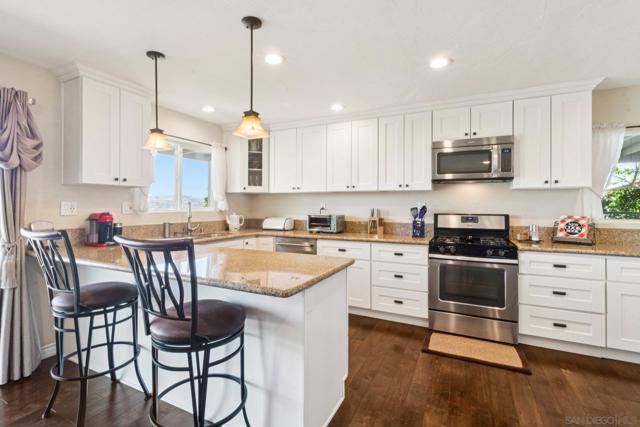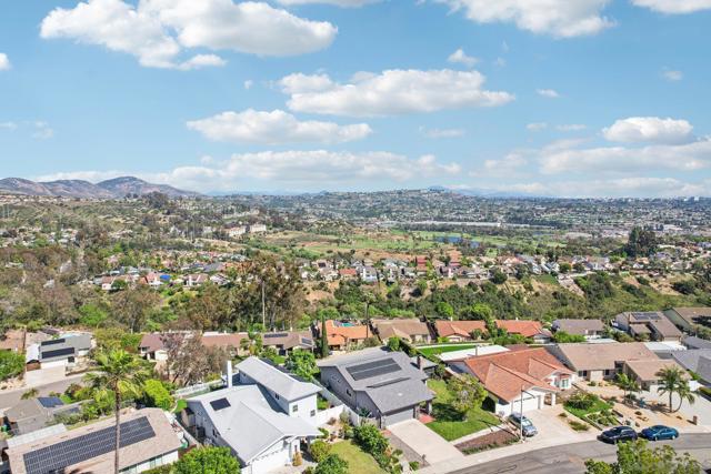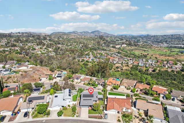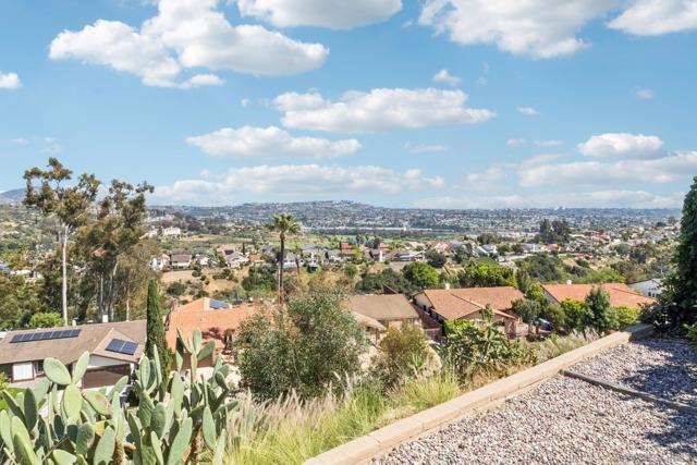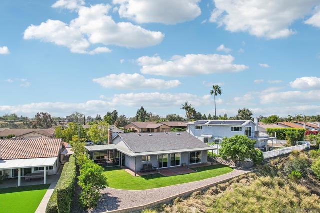 PRIME LOT WITH STUNNING VIEWS * BEAUTIFUL SINGLE STORY TIERRASANTA HOME * PAID OFF 26 PANEL SOLAR POWERED HOME Stunning panoramic eastern views of Mission Trails Regional Park highlight this beautifully maintained Tierrasanta home. Perfectly positioned on a great lot, this property offers incredible scenery, thoughtful updates, and comfortable indoor-outdoor living. The home features three bedrooms and two bathrooms with an open and inviting floor plan. Abundant windows fill the home with natural light, creating a bright and spacious feel throughout. The living room offers a cozy gas fireplace and flows seamlessly into the kitchen and family areas, making it ideal for both everyday living and entertaining. The nicely updated kitchen is designed for both style and functionality with granite countertops, stainless steel appliances, updated lighting, and plenty of storage. The large kitchen and open concept layout connect effortlessly to the living and family rooms, creating a welcoming space for gatherings. Both bathrooms have been tastefully updated, and the home features engineered hardwood along with updated doors and energy-efficient windows. Major upgrades include a new roof, 26-panel solar system and Quite Cool whole house fan added in 2019, a new water heater installed in 2022, and a 2024 AC unit with NEST thermostat for modern comfort and efficiency. Also, Termite work was just completed by Pacific Coast Termite! Step outside and the home truly shines. One of only a few homes in the community with unobstructed views of the stunning Mission Trails Regional Park, the backyard overlooks more than 8,000 acres of preserved natural landscape with miles of hiking and biking trails, rock climbing, and a community center and library nearby. Whether relaxing quietly or entertaining guests, the backyard offers endless panoramic views that create a true “wow” factor. The outdoor space includes two patio areas, a large side yard, and mature landscaping featuring tangerine, tangelo, lime, orange, and fig trees along with grapevines. A custom cat patio provides a unique bonus feature for pet lovers. A two-car attached garage and driveway provide convenient parking, and the home offers excellent curb appeal in a quiet, well-maintained neighborhood. Located one block away from Farb Middle School and Roadrunner Park, and within walking distance to the Tierrasanta Library and Town Center shops, this location combines everyday convenience with peaceful suburban living. Just moments from Mission Trails Regional Park, outdoor recreation is truly right at your doorstep. This is a rare opportunity to own a single-family home with spectacular forever views in one of Tierrasanta’s most desirable locations. Conveys: All appliances including the washer, dryer, kitchen refrigerator, and wine refrigerator