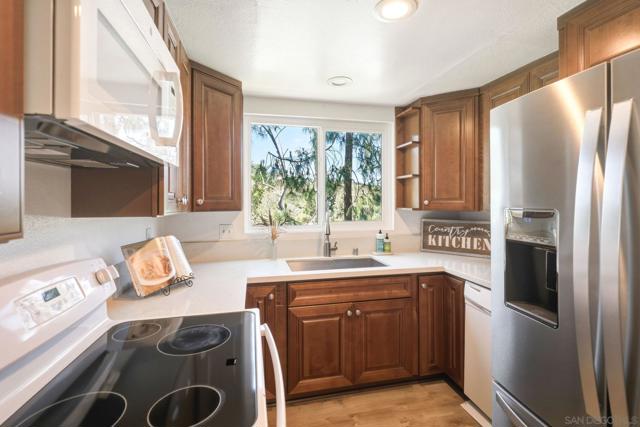 Location takes center stage in this beautifully updated townhome-style residence in the highly coveted Highland Trails community, set at the base of Mission Trails Regional Park. Thoughtfully positioned within a well-maintained enclave, this home offers a seamless blend of comfort, convenience, and access to nature. Westward facing views from the main living area offer mountain and sunset views. Inside, the two-bedroom, two-bath layout is enhanced by a series of recent upgrades, including a remodeled kitchen, newer windows, and a newer HVAC system, creating a move-in ready living experience. The spacious primary suite features a generous walk-in closet. The kitchen area includes a walk-in pantry, adding both function and storage. A cozy fireplace anchors the living area, offering warmth and character. The lower level provides a dedicated laundry room with full-size hookups and direct access to a private attached one-car garage, adding everyday ease and practicality. Just moments from miles of hiking and outdoor recreation at Mission Trails Regional Park, and within walking distance to its scenic trails and vistas, this home captures the essence of San Diego living—where natural beauty meets everyday convenience.
