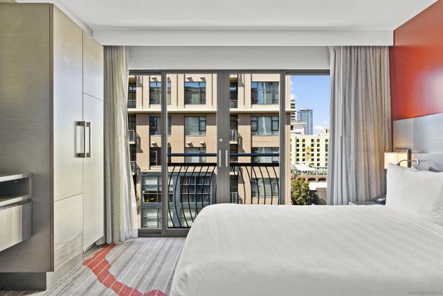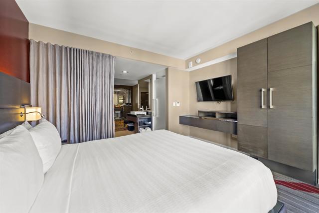 CASH ONLY — Located in the heart of the Gaslamp Quarter, directly across from the San Diego Convention Center, the Hard Rock Hotel offers unmatched access to Downtown’s most iconic attractions. Residence 950 is a north-facing one-bedroom suite featuring a king bed, separate living area, and a semi-private sleeping space divided by a privacy curtain. This fully furnished unit is part of the hotel’s exclusive Rock Royalty program and offers owners access to luxury amenities and concierge-level service, including a private owner’s lounge. Owners may place their unit in the hotel’s rental management program, allowing flexible personal use (28 days a year for free with an option to stay longer at a discounted rate) while generating potential revenue. Unlike traditional condos, these units are not for full-time occupancy (there is no kitchen ) and cannot be used as a primary residence.
