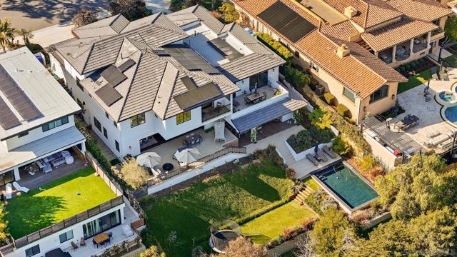 Experience a true custom-built masterpiece in one of the most coveted zip codes in the country. Completed in 2023 on a rare oversized lot, this distinctive Del Mar residence offers over 5,000 sq ft of refined craftsmanship and luxurious detail. The main home spans approx. 3,807 sq ft with 4 bedrooms, 4 full baths, and 2 half baths. The attached ADU adds 1,200 sq ft with 2 bedrooms, 2 baths, a private garage bay, full kitchen, and its own living space—ideal for multigenerational living or a premium rental to offset carrying costs. A huge asset for the savvy buyer. Inside, imported hardwoods blend with stone surfaces flowing from the grand foyer through the living spaces. Every feature is curated—from handcrafted built-ins and bespoke closets to coffered ceilings, oversized baseboards, and designer lighting. The chef’s kitchen impresses with an imported farmhouse sink from England, a custom range hood from Louisiana, and a professional Signature range with gas, induction, and sous vide cooking, paired with a Signature refrigerator and Bosch dishwasher. Outside, the Santa Barbara–style stucco exterior radiates timeless sophistication with lush landscaping and architectural detail. The backyard retreat features a custom pool, terraced turf areas, and multiple outdoor lounges and dining zones perfect for entertaining. Expansive patios capture sweeping east-facing mountain views from sunrise to twilight—making this not just a home, but a generational Del Mar estate of artistry, function, and opportunity.