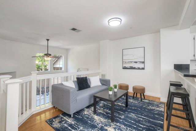 Welcome home to this beautiful townhome in highly desirable Sorrento Valley! Tucked into one of the best spots in the community, you’ll love the open feel with and gorgeous natural light streaming in throughout the day. Step inside to a bright and spacious living room with soaring ceilings and a cozy fireplace. Just off the living room is a private patio ideal for morning coffee, weekend entertaining, or letting pets enjoy some fresh air. The main level also offers a comfortable family room and an updated kitchen featuring granite countertops, stainless steel appliances, refreshed cabinetry, and a charming breakfast nook. You’ll appreciate the fresh custom paint and stylish laminate wood flooring that flows throughout the home, creating a clean and welcoming vibe. Upstairs, enjoy a popular and flexible layout with two generously sized primary suites, each with its own full bathroom with shower, perfect for families, guests, or roommates. The main suite is spacious and relaxing with beautiful community views, while the second suite is airy and equally inviting. Additional highlights include an attached two-car garage with plenty of storage space. The community features a pool, tennis courts, volleyball courts, and plenty of green space for kids and pets to play. Conveniently located near major freeways, shopping, and top tech hubs and everything you need is close by. This is a must see home!