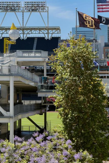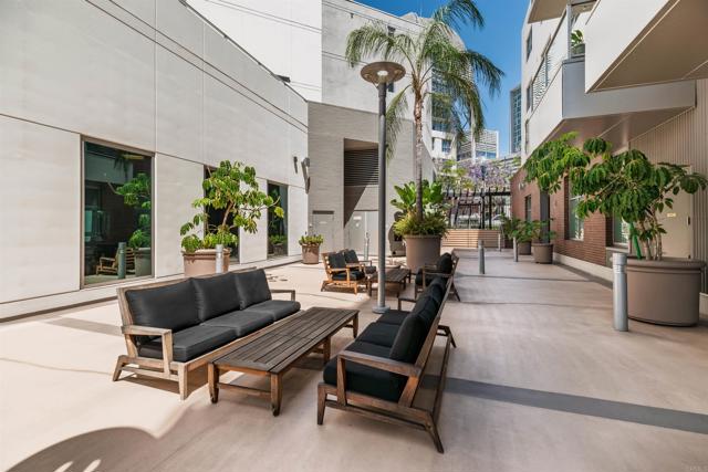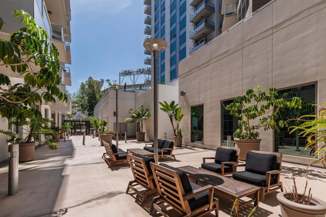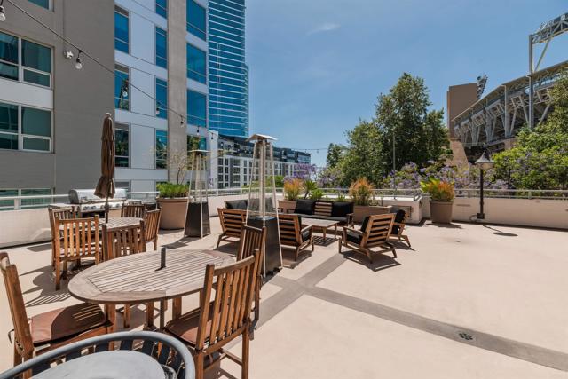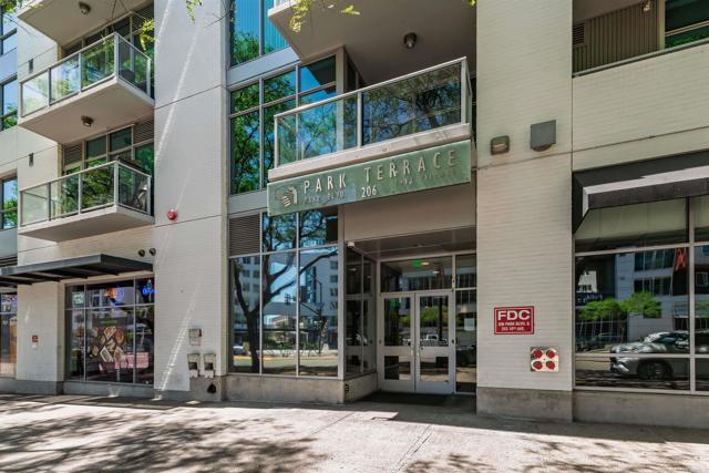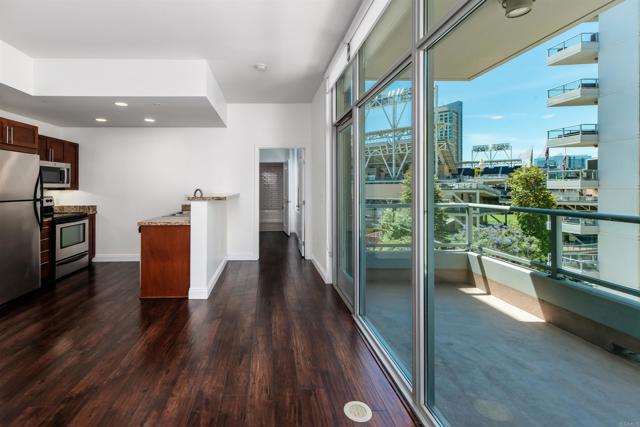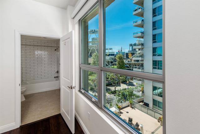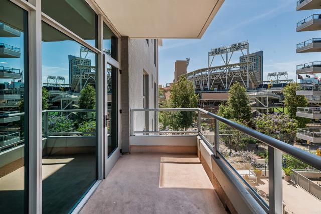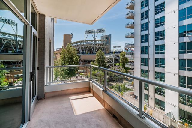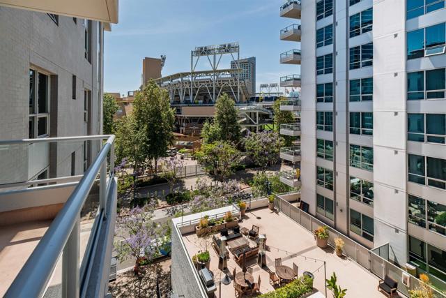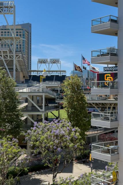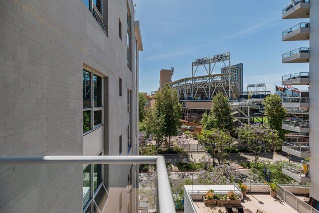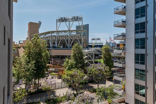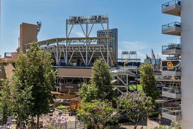 Where game day energy meets everyday living—welcome to your front-row view of Petco Park. Live at the center of it all from Residence #602 at Park Terrace, perfectly positioned in the heart of East Village. This sixth-floor residence offers a rare vantage point overlooking Petco Park with direct views into the ballpark, delivering an unmatched blend of vibrant city living and everyday comfort. Inside, the home features hardwood flooring, granite countertops, and an open layout designed to maximize natural light and showcase the views. Floor-to-ceiling windows and a spacious private balcony create a seamless indoor-outdoor experience, capturing both the energy of game day and the beauty of the downtown skyline. Over the past five years, the condo has been thoughtfully upgraded with a fully remodeled shower including a new bathtub, tile, and fixtures, custom roller shades throughout with blackout shades in the bedroom, a new dishwasher, microwave, and in-unit washer and dryer, plus fresh interior paint completed in 2024—offering a truly turnkey opportunity. Park Terrace enhances the lifestyle with a well-appointed fitness center, resident lounge and game room, and a rooftop terrace with BBQ grills—perfect for entertaining before, during, or after the game while soaking in the electric atmosphere just steps away. The building also features a secure, gated underground parking garage and 24/7 security for added convenience and peace of mind. Step outside and enjoy immediate access to the best of downtown San Diego. Just moments away, the Gaslamp Quarter offers endless dining, nightlife, and entertainment, while scenic waterfront strolls await at Seaport Village and live performances at Rady Shell at Jacobs Park. East Village continues to evolve as one of the city’s most exciting culinary destinations, with local favorites like Callie, Cowboy Star, Neighborhood—home to hidden speakeasies Youngblood and Noble Experiment—and Izola Bakery all nearby. Whether you're hosting friends for a game, enjoying concerts from the comfort of home, or unwinding in the quieter off-season, this residence offers a truly unique living experience—highlighted by one of the most coveted views in downtown San Diego.