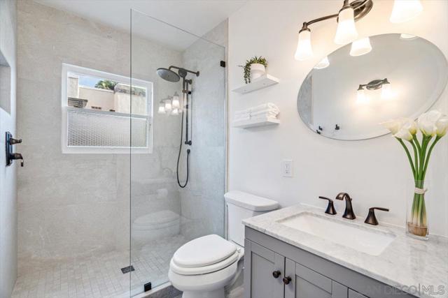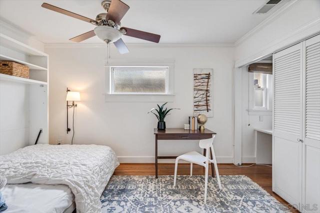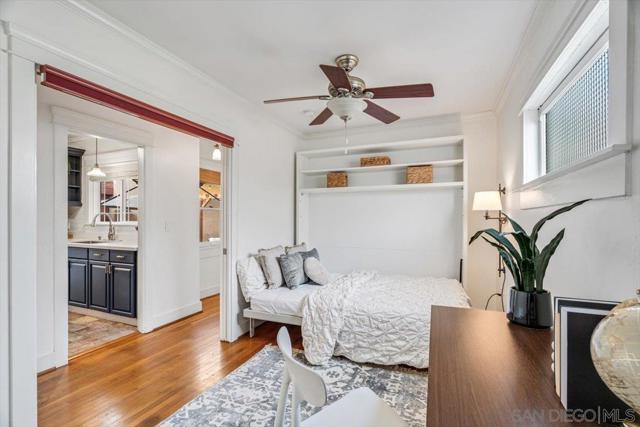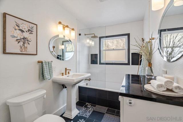 Quintessential Spanish-style home in the heart of Kensington Village! Over 100 years old, it is filled with classic charm & modern amenities. The main house (3 bed/2 bath, 1,457 sq ft) features original hardwood floors, moldings, coved ceilings & a fireplace. Newer ADU (studio/1 bath, 407 sq ft) offers flexibility for guests or rental income. Includes solar, lush private yard w/spa, garage with carport & alley access. Mills Act potential - future property tax savings. Just steps from Adams Ave’s shopping and dining, this home offers the location and amenities you’ve been searching for! The galley kitchen blends classic charm with modern elements, featuring stainless steel appliances, abundant storage, and ample counter space. The primary suite offers a spacious bedroom, private bath & walk-in closet. The ADU is behind the garage and is not directly accessible from the main home.