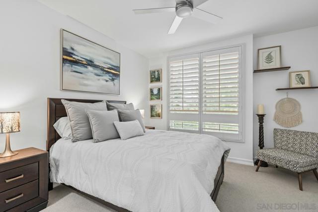 This beautifully remodeled and spacious home features a highly desirable split floor plan that ensures privacy and versatility—perfect for accommodating roommates, hosting guests or creating a dedicated home office. The brand-new gourmet kitchen features Classic Calacatta quartz countertops, a Kohler farmhouse sink and KitchenAid stainless steel appliances. The open-concept living area is large and inviting, enhanced by plantation shutters and new LED lighting throughout. Both bathrooms have been stylishly renovated, and new plush carpeting adds warmth and comfort throughout the bedrooms. Stay cool year-round with the new 2-ton HVAC system and Nest thermostat, offering modern energy efficiency. This condo offers ample storage with multiple closets and cabinets including two large walk-in closets adjacent to the bedrooms. With a Walk Score of over 90, Union Square is located across the street from San Diego City College with convenient access to major freeways: 163, 5, and 94. Adding to the neighborhood’s safety and peace of mind, the San Diego Police Department (SDPD) headquarters is also located directly across the street. Union Two blocks away a 4.1 acre East Village Green park is under construction and a wonderful addition to the neighborhood! The development will include a community center, children’s park, off-leash dog areas, cafés, plazas, multiple lawn areas, a performance pavilion and underground parking. Union Square Condominiums deliver exceptional value with below-average HOA fees. Amenities include a fitness center, pool, sauna, clubhouse with a pool table, and courtyards with BBQs. The HOA also covers key utilities such as water and trash, adding even more value for homeowners. An on-site property manager ensures smooth day-to-day operations, while multiple communal EV charging stations make powering your electric vehicle easy.