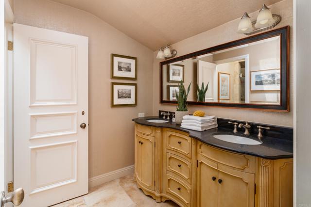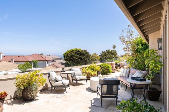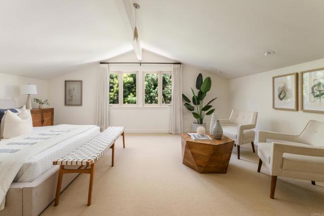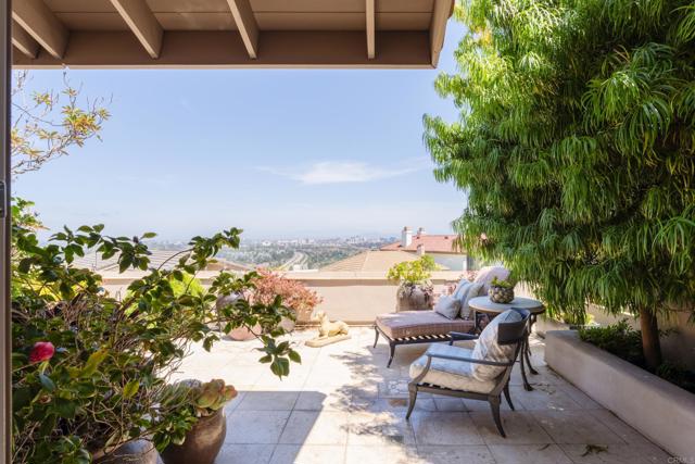 Discover this luxurious 3-bedroom, 3-bath home in the exclusive guard-gated community of Windemere La Jolla, blending sophisticated design with indoor-outdoor living. Featuring vaulted ceilings and abundant natural light, the chef’s kitchen offers quartz countertops and stainless steel appliances. The main level includes the primary suite, which features a spacious walk-in cedar closet and a spa-like bath with updated dual vanities, and a recently added secondary bedroom adjacent to a full bathroom. The upstairs bedroom is separate from the bathroom and connected via an open breezeway featuring library-like shelving. Enjoy sweeping easterly views from the wraparound garden patio with mature landscaping, a built-in barbecue, and a tranquil fountain. Recent upgrades and repairs ensure this home is move-in ready, including modernized baths and a kitchen. Residents benefit from resort-style amenities like pools, a fitness center, and lighted tennis courts, all just minutes from La Jolla's beaches and vibrant dining options. This turnkey oasis is a must-see!