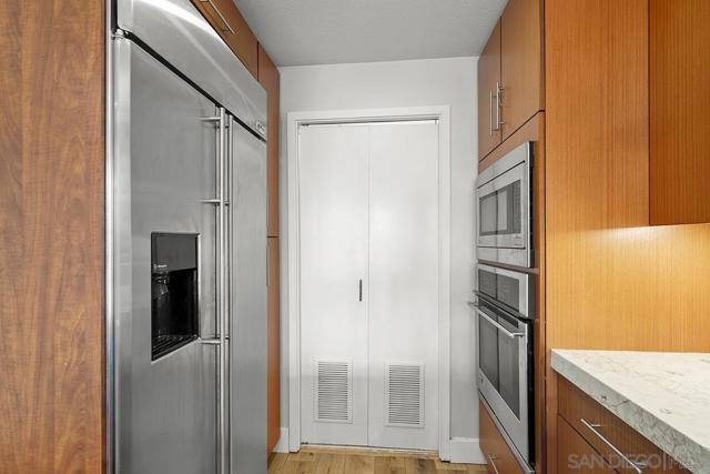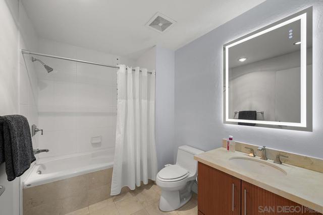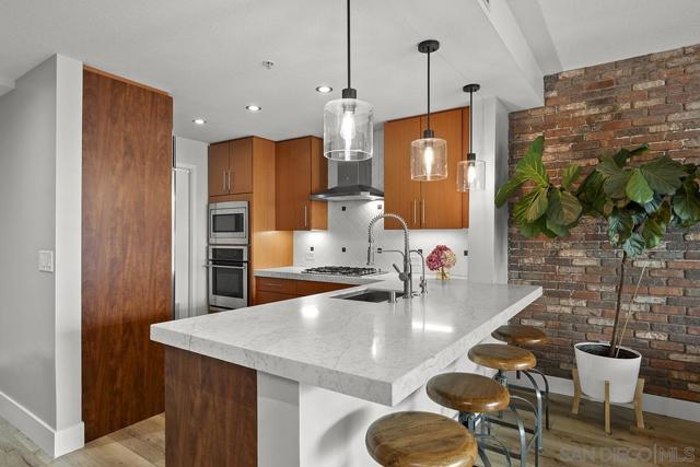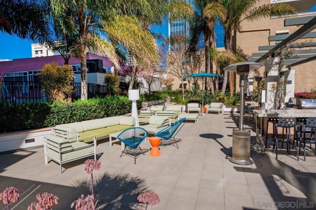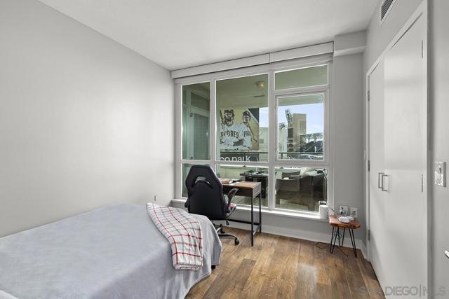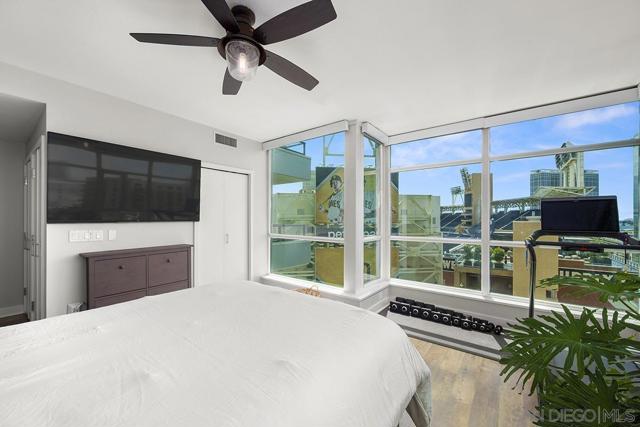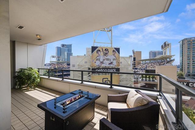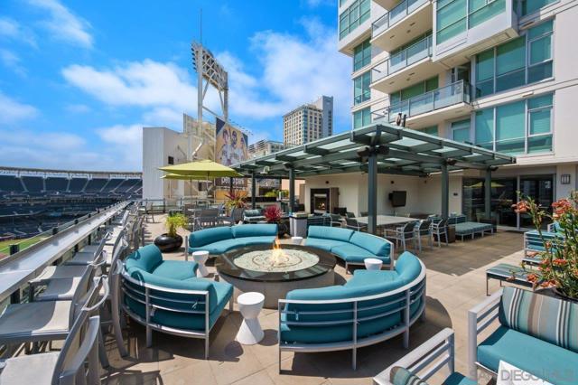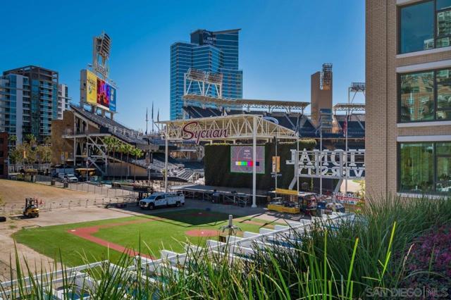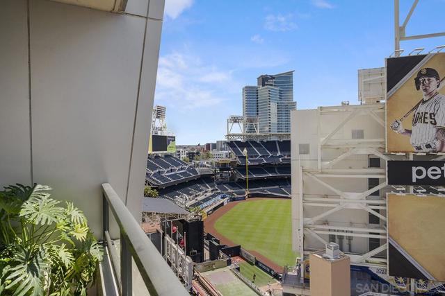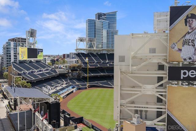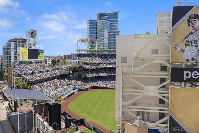 Front-row seats don’t get any better than this southwest corner residence at The Legend, Downtown San Diego’s iconic address perched directly above Petco Park—where this condo delivers a living experience for the true baseball fan. From your large, private balcony, the scoreboard, outfield, and stadium energy are on full display. For game day, pull up a chair to your firepit and settle in—you’re not just watching the game, you’re part of it. Inside, the home steps up in equal fashion. Wide-plank vinyl flooring and a striking brick accent wall stretch from the kitchen through the living space, adding a level of warmth and character rarely found in a high-rise plus remote shades throughout. The kitchen is the heart of the home, featuring stainless appliances, upgraded custom slab stone counters with breakfast bar, glass pendant lighting, gas cooktop with hood, and rich wood cabinetry—perfect for hosting before first pitch or unwinding after the final inning. The primary suite takes full advantage of its corner positioning with floor-to-ceiling windows that capture sunlight, the cityscape, and peek bay views, along with a walk-in closet and an ensuite bath complete with dual vanity with backlit LED mirrors and step-in shower. The second bedroom offers flexibility with equally inviting natural light and ballpark views, ideal as a guest retreat, home office, or a combination of both. Rare features with two parking spaces (tandem) and a private storage unit right outside your condo’s door; valuable perks in the heart of the city! Just steps from the Gaslamp Quarter, the waterfront, and Little Italy, you’re immersed in the best of San Diego’s dining, entertainment, and coastal lifestyle. When it comes to location, lifestyle, and views, this one truly hits it out of the park! The Legend is the only residential high-rise to be built inside the gates of a Major League Ballpark and the only residential tower to be built on the three-acre Park at the Park! This iconic building overlooking the Padres Ballpark will be treasured for generations with historic detailing preserved by Bosa to create a world class residential tower. Centrally located next to the Gaslamp Quarter and Marina District for convenient access to shopping and endless dining options. The Legend’s amenities include a second-floor rooftop deck looking out over Petco Park complete with pool and spa, a fully equipped fitness room, roof garden, barbeque area, steam, sauna and changing rooms. Your guests and clients will love 'Club Legend' located on the seventh floor, complete with a huge roof deck overlooking Petco Park and an outdoor fireplace lounge fully-equipped with indoor and outdoor kitchen and BBQ. An elegant courtyard entrance, creating a private enclave approaching the lobby provides a fitting and impressive sense of arrival for residents and their guests. The concierge service and 24-hour security add a sense of belonging while an ambiance of refinement and contemporary sophistication is apparent throughout the building.