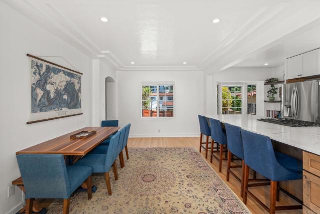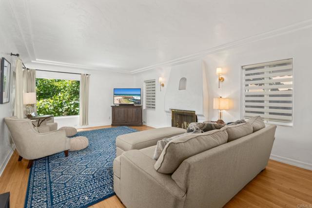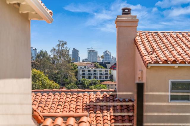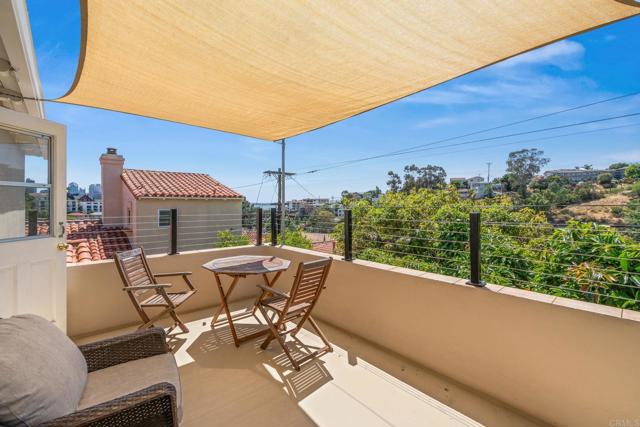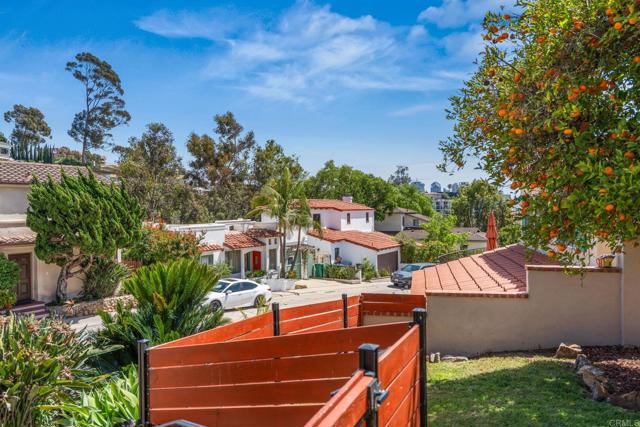 Romantic Spanish-style home built in 1938 in a pocket of Dove Street with a distinctly Mediterranean vibe. The surrounding homes, with clay tile roofs and vintage retaining walls constructed of arroyo rock lining the sidewalk, create a charming and welcoming neighborhood. This 2-story home features a remodeled kitchen with a large island, pantry & eat-in area. The kitchen opens to the dining room to encourage lively interaction with family & guests. Double French doors provide access to a cozy deck and the backyard. The living room is generously sized, with a fireplace and windows overlooking the backyard's giant avocado tree. One bedroom and bath downstairs and 2 bedrooms and one bath upstairs. The 2nd-story balcony overlooks the hillside and offers a peek at San Diego Bay and downtown's skyline. The yard, elevated from the street & fully enclosed, has citrus trees and a vegetable / herb garden. A few things to love about the house: Walk to Little Italy, Bankers Hill, Balboa Park, and a variety of restaurants and coffee houses. Easy proximity to downtown for Padres games or concerts at the Rady Shell, and quick access to beaches, freeways and San Diego Airport.