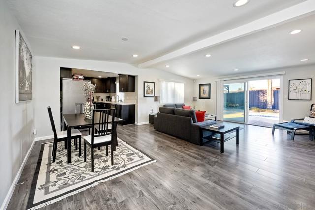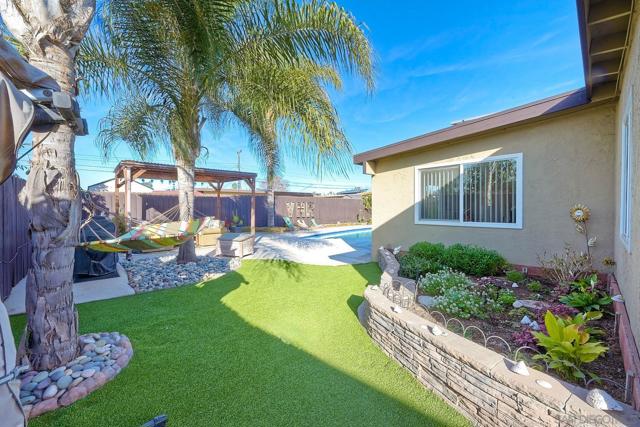 Amazing 3 bed, 2 bath STUNNING POOL home offering 1,359 sq ft with exceptional indoor/outdoor living, located about 12 blocks from the beach. This light and bright home features an open-concept great room with vaulted ceilings, creating an airy, spacious feel that lives larger than the square footage suggests. The interior has been tastefully remodeled with updated kitchen cabinetry, sleek quartz countertops, included appliances, and two spa-inspired bathrooms. Additional upgrades include newer flooring throughout, a newer roof, fully owned solar, and forced air HVAC for year-round comfort. An oversized 1-car garage with laundry hookups adds convenience and functionality. Step outside to your private backyard retreat—complete with a sparkling in-ground pool, expansive decking, and multiple areas designed for relaxing and entertaining. A serene palapa-style covered lounge, barbecue area, hammock space, artificial turf, and lush landscaping with mature plants and flowers create a true coastal oasis. Assumable VA loan at 3.250%! Set in a laid-back beach community, this home offers the perfect blend of comfort, style, and lifestyle. Whether you're hosting poolside gatherings or heading down to the coast just minutes away, this is Imperial Beach living at its best.