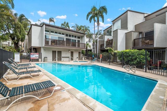 Floor to ceiling double pane windows fill this two-bedroom, two-bathroom condominium with natural light. An open first floor integrates the living room, dining area, and kitchen, creating a warm and inviting atmosphere. Ample counter space and a passthrough window make the kitchen ideal for home cooking and entertaining, and cleanup is easy thanks to the dishwasher. Building amenities include a pool/spa, community laundry, and gated parking. The location of this property provides easy access to SDSU, local shops, restaurants, and public transportation options. VA approved complex.