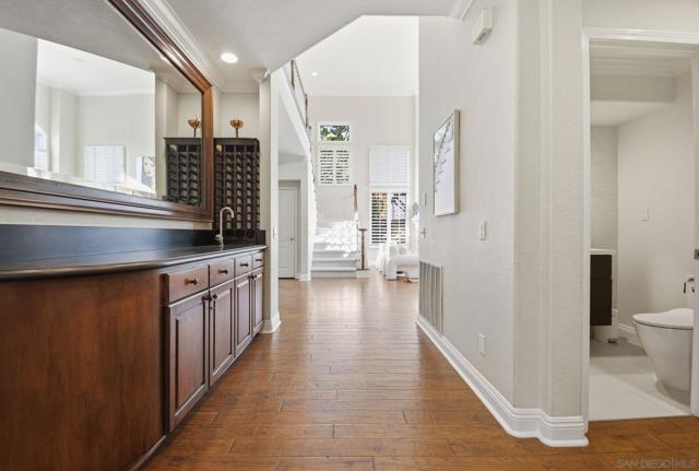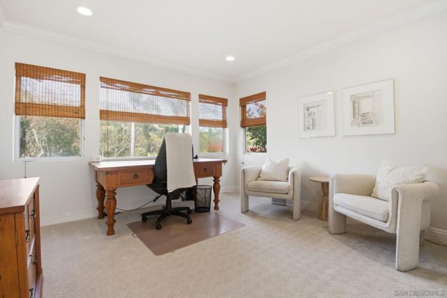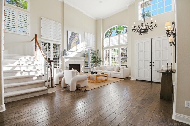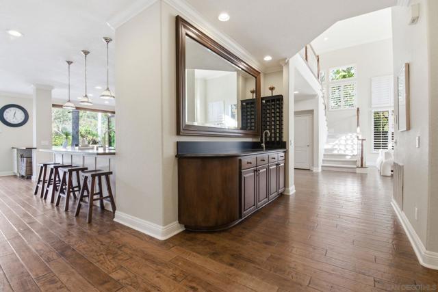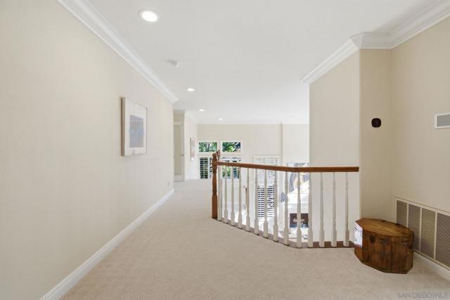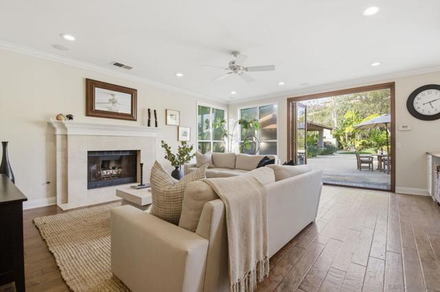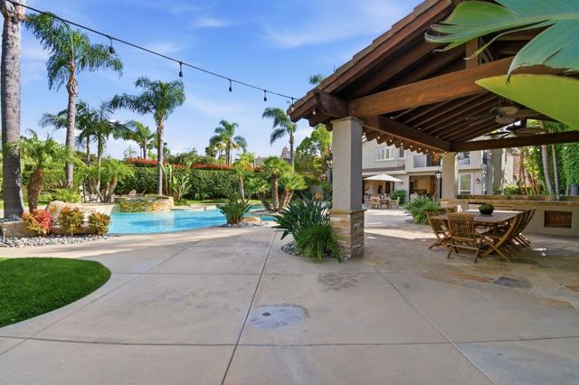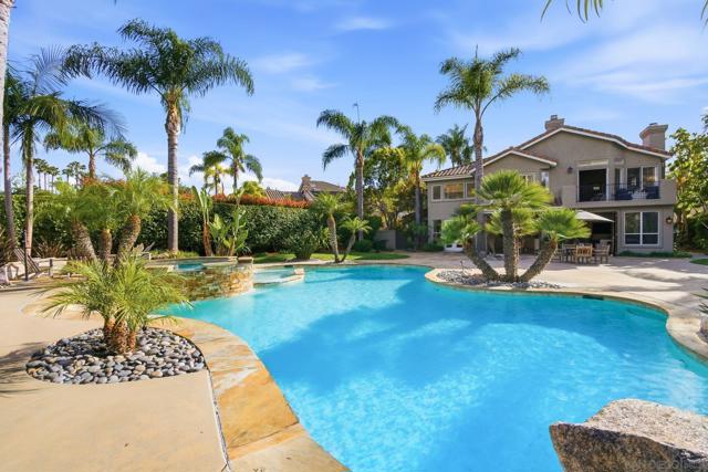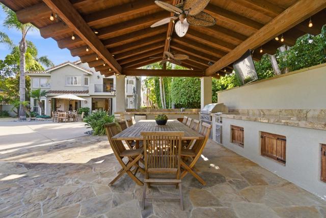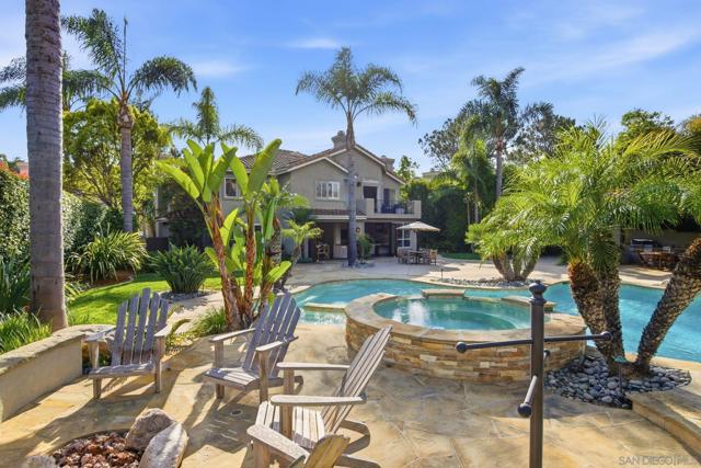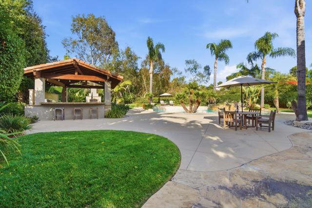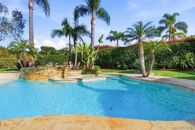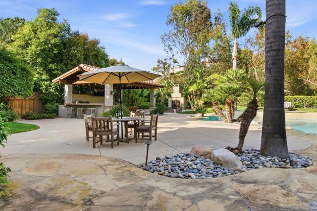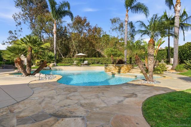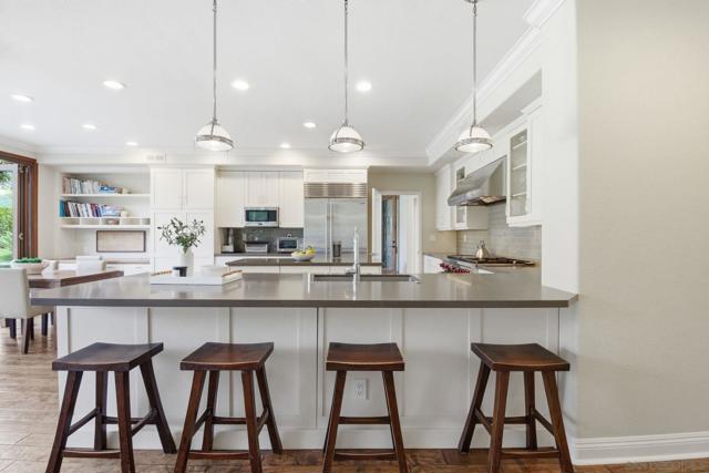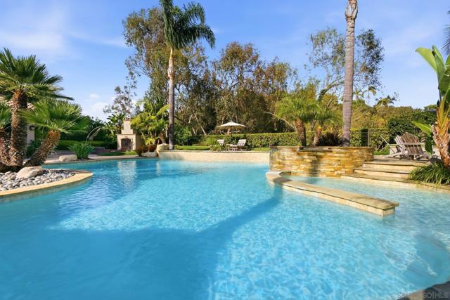 Prestigious Santa Fe Summit Estate, on one of Carmel Valley's most coveted lots, this stunning .38-acre is the kind of property that comes along once in a great while. From the moment you pull up, the scale, the setting, and the sheer beauty of it all make clear that something special awaits inside. The interior has been thoughtfully remodeled from top to bottom with a level of care that shows in every detail. The chef's kitchen is anchored by a Wolf 6-burner double oven, Sub-Zero refrigerator and Bosch dishwasher. Distressed hickory hardwood floors, plantation shutters and remodeled bathrooms throughout give the home a warm, polished feel. La Cantina wood and glass doors open to the backyard seamlessly, and a first-floor bedroom with French doors to a tranquil fountain courtyard adds flexibility for any buyer. The primary suite is a true retreat with a private balcony overlooking the backyard. The 900-bottle wine cellar, integrated Sonos sound system inside and out, owned 25-panel solar, 40-amp Tesla charger, smart Ecobee climate control and LED lighting throughout complete the picture of a home that has it all. Out back, the resort-style yard steals the show. Pool, spa, an outdoor pavilion with a built-in Lynx BBQ and full kitchen, a bar and a romantic fireplace make this backyard the ultimate place to entertain or simply unwind. Rarely does a property this special come to market in Carmel Valley!!