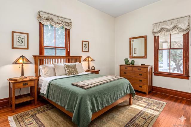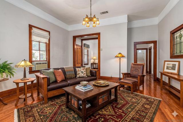 Super Charming Turn Of The Century California Bungalow nestled in the heart of the Historic District of Old Escondido, this charming and distinctive home beautifully blends timeless character with thoughtful expansion. Original hardwood floors run throughout the initial residence, setting the stage for classic details like a formal dining room with a built-in hutch and not one, but two separate living rooms—an ideal layout for multi-generational living, working from home, or simply spreading out in comfort. The oversized kitchen is a true centerpiece, featuring a sunny breakfast nook, an abundance of cabinetry, a vintage stove and oven paired with modern convenience from a dishwasher, and a layout designed for gathering. In 1990, a substantial 1,332-square-foot addition transformed the home, adding a spacious living area, a relocated and expanded kitchen, a one-car garage, and a private 575-square-foot loft with a full bathroom—perfect as a guest suite, creative space, or private retreat. Outdoors, a portion of the yard is fenced for added usability, while practical updates provide peace of mind, including a newer roof (2015), heating and air conditioning (2005), and a recently replaced water heater (2022). This is a rare opportunity to own a piece of Old Escondido history with space, flexibility, and enduring appeal.