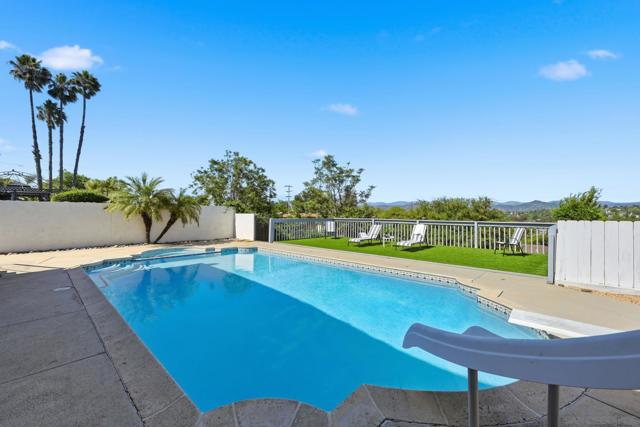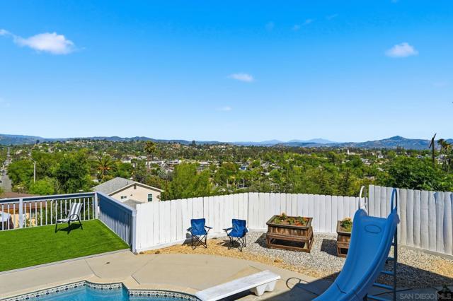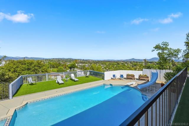 Discover a truly stunning, beautifully remodeled home nestled in the heart of Escondido where comfort, style, and breathtaking views come together in perfect harmony! This inviting home features 4 bedrooms and 2 full baths, designed for both everyday living and effortless entertaining. The fully remodeled primary suite is conveniently located on the first level, offering a serene private retreat complete with an elegant ensuite bath and a generous walk-in closet. Step inside and feel the excitement of fresh, modern upgrades throughout! Brand-new laminate flooring elevates every bedroom, while rich hardwood floors flow seamlessly from the living room into the kitchen and dining area. The open-concept layout creates an airy, welcoming space that feels both expansive and cozy perfect for gathering, relaxing, and making memories. At the heart of the home, the kitchen truly shines! A gorgeous granite island takes center stage, complemented by a sleek new backsplash, stainless steel appliances, and fresh paint, an entertainer’s dream and the perfect place to enjoy everything from casual breakfasts to festive dinners. Step outside to your own private oasis! The sparkling pool invites you to soak up the sunshine, host unforgettable get-togethers, or simply unwind while taking in sweeping city views framed by distant mountain silhouettes. As evening falls, the balcony becomes your personal sanctuary ideal for sipping a glass of wine or tea while enjoying the tranquil glow of city lights. Centrally located and close to I-15. Come and see this gorgeous homes and make it yours! Plus, with fully paid-off solar, you can stay cool all summer long while keeping energy costs low. No HOA and low-maintenance rock landscaping add even more convenience to this exceptional property. This home truly has it all—style, comfort, efficiency, and unforgettable views. Experience it for yourself and imagine the incredible lifestyle waiting for you here!