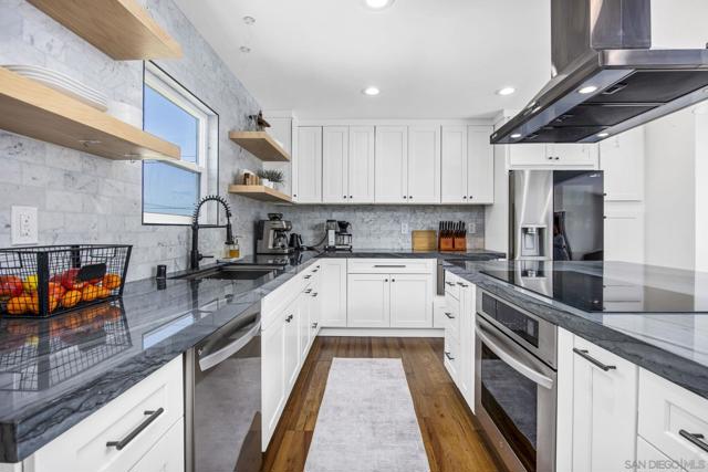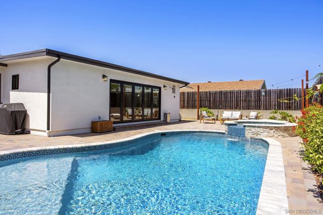Welcome to this completely remodeled single-story home in the heart of Allied Gardens, where thoughtful upgrades and quality craftsmanship come together in a way that’s hard to find. This home has been meticulously restored from top to bottom, offering true peace of mind with major system improvements already done for you. From the upgraded plumbing and electrical to the newer roof, OWNED solar system, and enhanced insulation, this is the kind of renovation you don’t always see—but definitely feel. Inside, you’ll find a bright, open living space highlighted by real hardwood floors and a clean, modern design. The fully remodeled kitchen features sleek appliances and flows seamlessly into the main living area, creating an easy, functional layout for both everyday living and entertaining. The bathrooms carry that same elevated feel, including a stunning walk-in shower with a herringbone tile pattern that adds just the right amount of character and style. One of the standout features of the home is the expansive 14-foot La Cantina-style sliding door, which opens up to your backyard and truly brings that indoor-outdoor San Diego lifestyle to life. Step outside and it only gets better. The backyard has been transformed into a private retreat, featuring a beautifully restored PebbleTec pool, new spa, upgraded equipment, and stylish paver hardscaping—perfect for soaking up the sunshine or hosting friends and family. All of this, set in one of San Diego’s most central and established neighborhoods, just minutes from parks, shopping, dining, and easy freeway access. Homes like this—where the heavy lifting is already done—don’t come around often. Homes in this area don’t last long for a reason… and this one checks a lot of boxes.