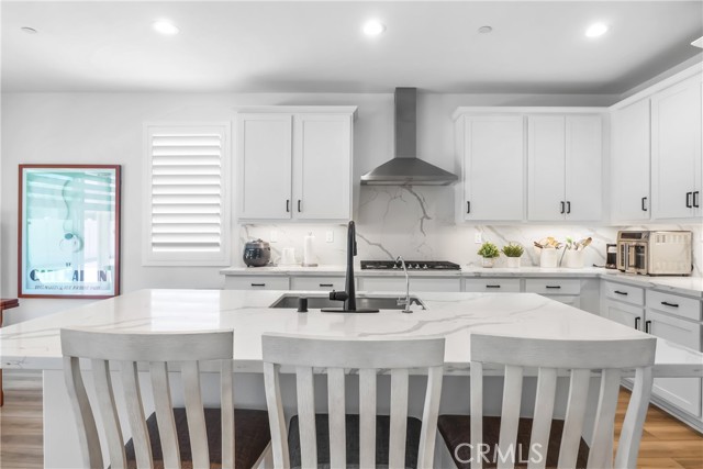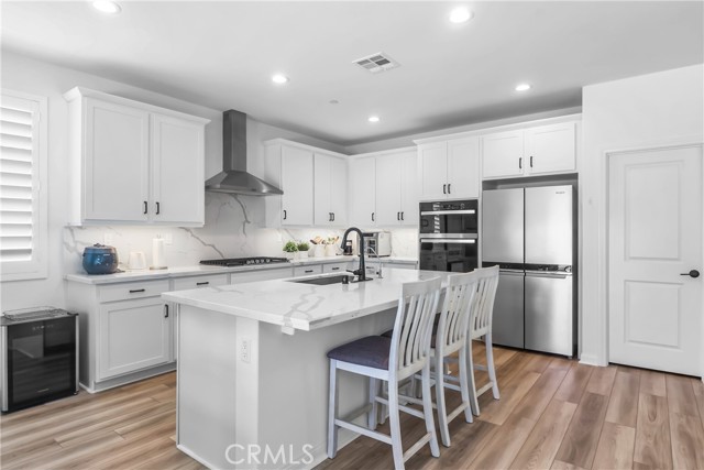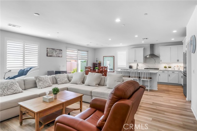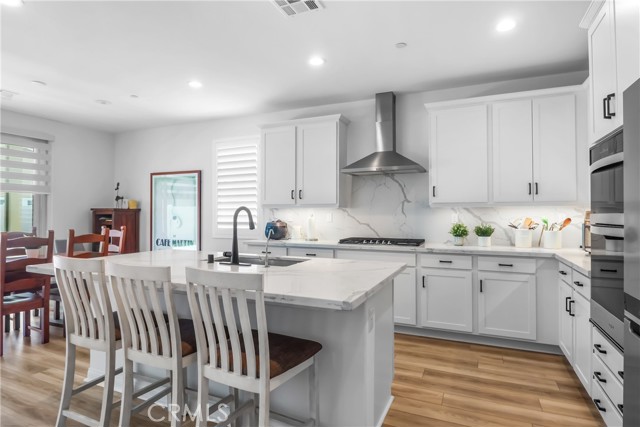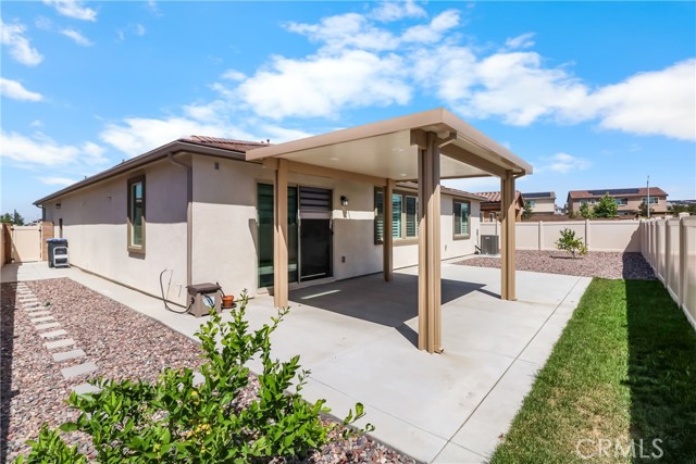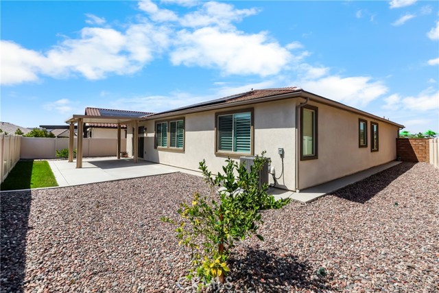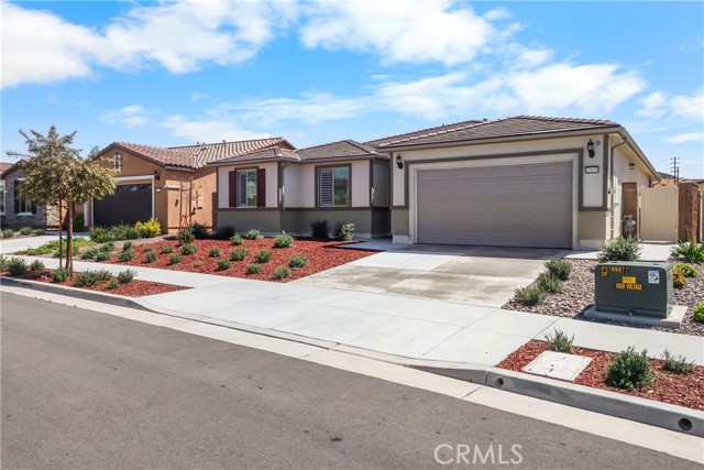 Nestled within the prestigious gated community of Highland Grove, 12939 Big Valley Court presents a sophisticated single-story lifestyle in the highly sought-after "Exeter" floor plan. This 2023-built residence offers 2,304 square feet of meticulously designed living space, characterized by nine-foot ceilings, luxury engineered laminate flooring, and an open-concept layout that seamlessly integrates formal and casual living areas. At the heart of the home, the gourmet kitchen serves as a culinary masterpiece, featuring designer-upgraded quartz/granite countertops and backsplash, a generous center island, premium stainless-steel appliances, and a substantial walk-in pantry. The accommodation includes three spacious bedrooms and three bathrooms, complemented by a versatile flex bonus room that easily adapts to a professional home office, bedroom, or fitness suite. Engineered for modern sustainability, the property is equipped with a fully purchased solar system with battery backup, a tankless water heater, and integrated smart home technology. The exterior featuring a covered patio and professional lush landscaping perfect for year-round enjoyment. Community amenities including a sparkling community swimming pool, spa, fire pit, cabana and a playground for children, creating the perfect balance of relaxation and recreation. This exceptional home offers a perfect balance of luxury and convenience, positioned just minutes from the 91 and 15 freeways and premier local amenities.