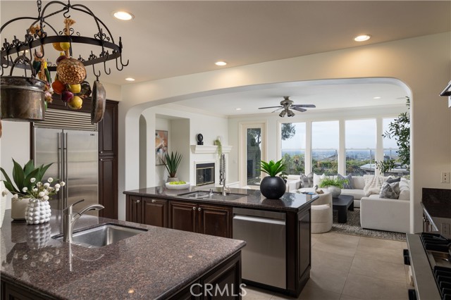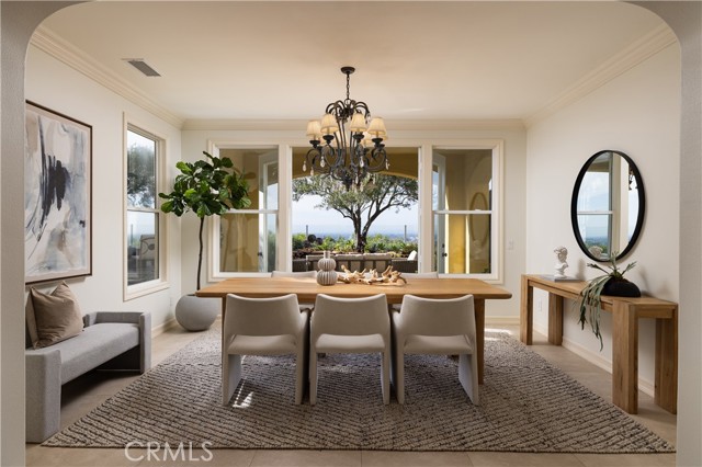 Set behind the gates of one of Newport Coast’s most coveted enclaves Newport Ridge North, 1 Harcourt is a refined expression of coastal luxury, offering sweeping city light and Pacific Ocean views in a setting defined by privacy and prestige. Spanning a thoughtfully designed floor plan, this 5-bedroom, 4.5-bath residence seamlessly blends elegant formal spaces with comfortable everyday living. A desirable main-level en-suite bedroom provides flexibility for guests or multigenerational living, while soaring ceilings and expansive windows fill the home with natural light. The chef’s kitchen is both functional and striking, appointed with Viking stainless steel appliances, double ovens, and dual islands, anchored by a charming breakfast nook ideal for casual mornings. Living spaces transition effortlessly outdoors to a beautifully landscaped backyard designed for both relaxation and entertaining, all set against a backdrop of shimmering evening lights and coastal vistas. Upstairs, the primary suite serves as a private retreat, where panoramic views create a serene and luxurious escape. Additional bedrooms are generously sized, including a secondary space with dramatic ceiling height offering the opportunity to create a loft, study, or playroom. Offering exceptional versatility, the property also presents unique expansion opportunities, including the potential to convert the single-car garage into a two-story ADU or additional living space, an option originally offered by the builder. Residents enjoy access to an array of resort-style amenities, including pool, clubhouse, tennis, pickleball and basketball courts, parks, playgrounds, and expansive greenbelts, all within the community. Moments from Pelican Hill, world-class shopping and dining, award-winning schools, and the 73 Toll Road, this is a rare opportunity to experience elevated coastal living in one of Orange County’s most sought-after locations.