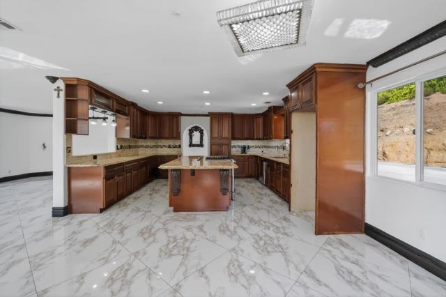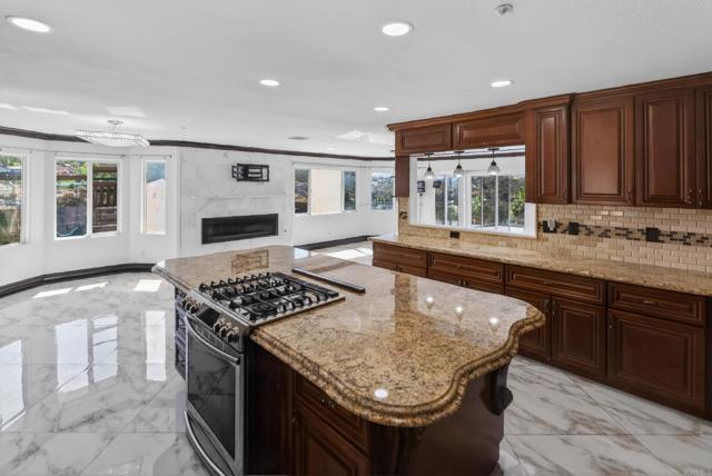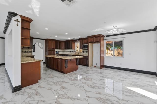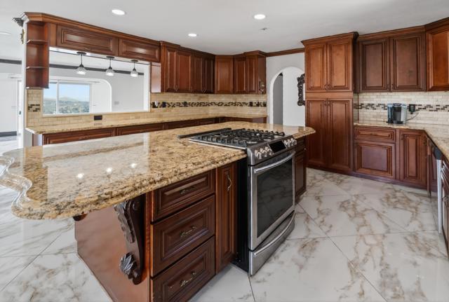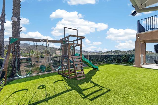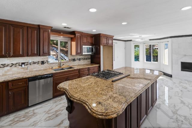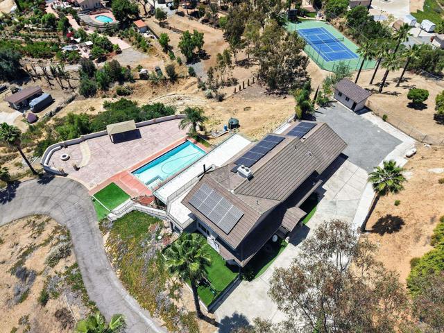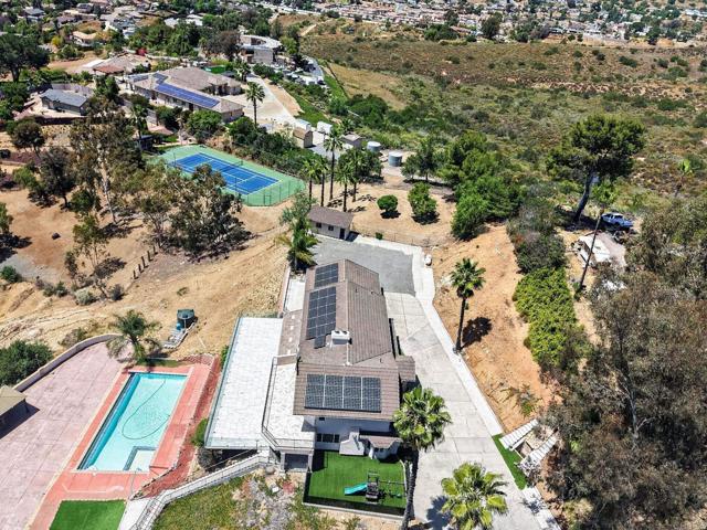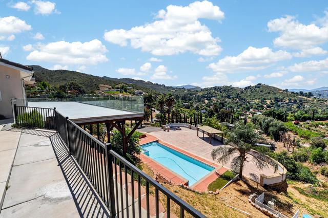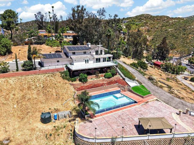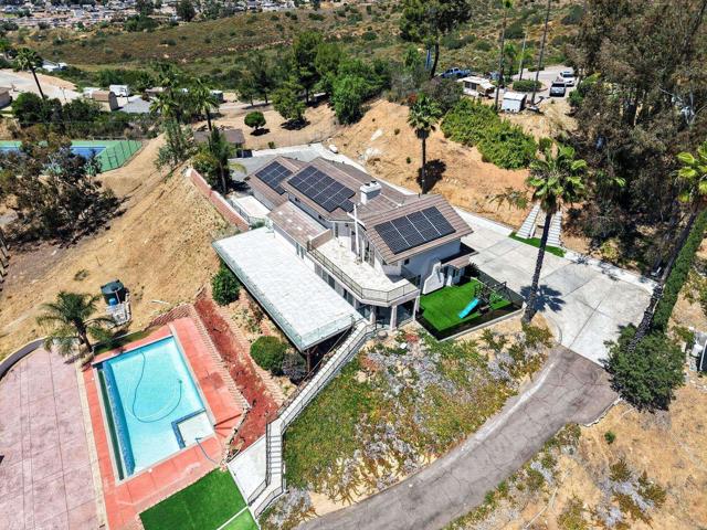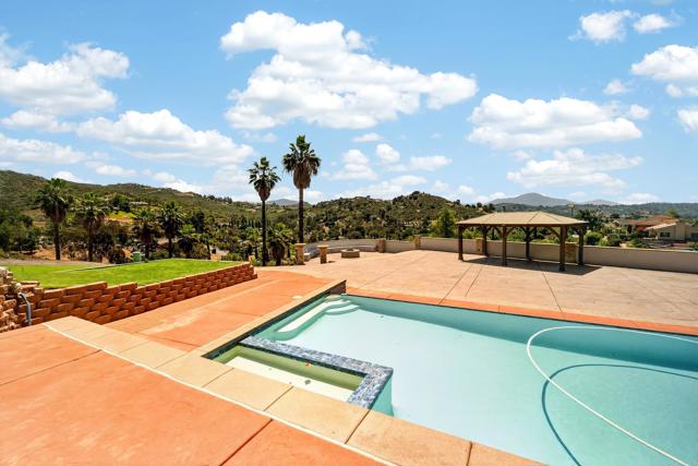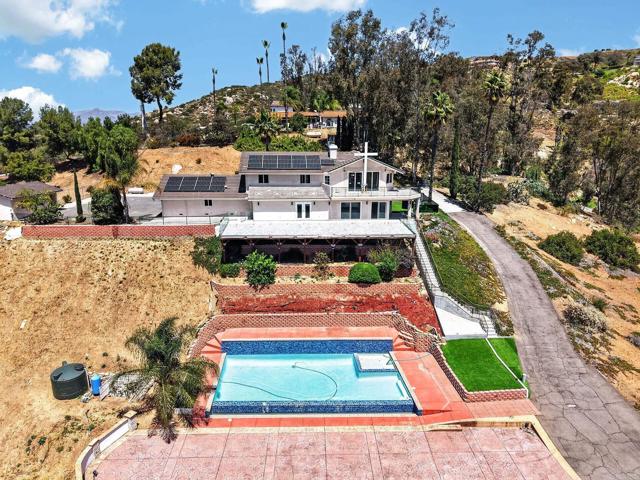 Set high above Granite Hills on a commanding 3.61-acre ridge, this private gated estate delivers a rare blend of scale, seclusion, and elevated living. With sweeping panoramic views stretching across the valley, the property offers a true sense of retreat, where privacy, space, and lifestyle converge. Inside, the 3,512 sq ft residence unfolds with 6 bedrooms and 4 bathrooms, thoughtfully designed to accommodate both grand entertaining and everyday comfort. Natural light fills the interiors, highlighting timeless travertine flooring and refined living spaces anchored by a striking two-sided fireplace that creates warmth and connection throughout the home. The kitchen flows effortlessly into multiple gathering areas, ideal for hosting or quiet evenings at home. The entry-level primary suite is a private sanctuary, complete with its own fireplace, sitting area, and direct access to the grounds, offering a seamless indoor-outdoor lifestyle. Outdoors, the estate transforms into a resort-inspired experience. A sprawling covered patio captures unobstructed 180-degree views, perfect for sunset dining and year-round enjoyment. Below, a separate entertainment tier reveals a resort-style pool setting with expansive deck space, lounge areas, and endless potential for unforgettable gatherings. The property’s elevated positioning ensures exceptional privacy, while solar adds efficiency to this expansive lifestyle. With over 3.6 acres of usable land, the possibilities are as impressive as the setting itself. A rare offering where space, views, and lifestyle come together, this is Granite Hills living at its finest.