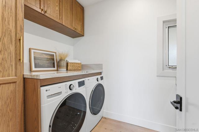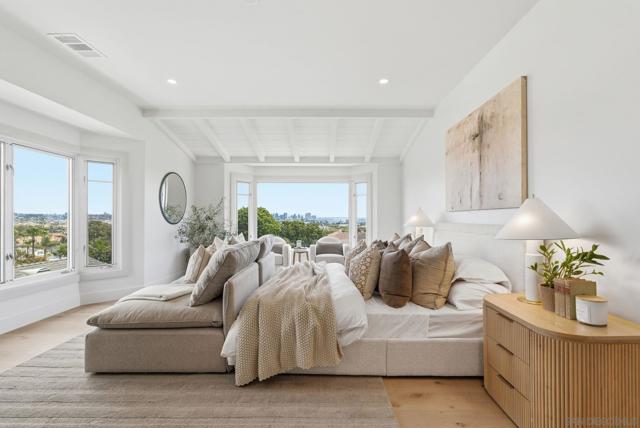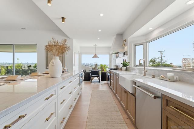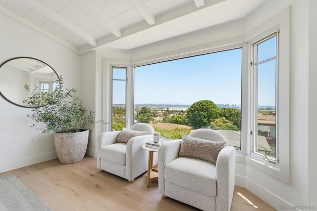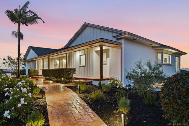 Stunning bay views stretching from Coronado to the San Diego downtown skyline and beyond! Relax and admire the magnificent panoramic views through your disappearing 4 panel, 20-foot pocket door. This designer’s dream property was newly renovated in 2026. Custom cabinetry, luxury lighting, state of the art appliances, with 4 of 5 bedrooms having walk in closets and ensuite bathrooms. Entertainers' backyard with plenty of space to add a pool, including ready to go pool renderings. Enjoy sunsets over the bay from your bedroom, living room or private patio. Experience the best of San Diego’s indoor-outdoor coastal living, with easy access to the beaches, downtown, the airport and all San Diego has to offer! Two laundry rooms! Upstairs and downstairs.