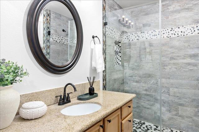 Welcome home to Lake Park- a bright, freshly painted top floor corner unit tucked into one of La Mesa's most-loved communities, with peaceful city and hillside views that make every morning feel a little calmer and every evening a little more beautiful. This one-bedroom condo has been lovingly refreshed with newer flooring, character-filled accent walls, updated bathroom tile, and a beautifully remodeled walk-in shower. The layout feels open, airy, and genuinely inviting — the kind of space that's easy to settle into the moment you walk through the door. Step outside and the Lake Murray lifestyle is right at your fingertips. You're just a short stroll from the lake's scenic loop, miles of hiking and biking trails, and the wide open beauty of nearby Mission Trails. Inside the community, Lake Park offers a true resort-style experience: sparkling pool and spa, sauna, exercise room, clubhouse, BBQ area, tennis and pickleball, basketball court, beautifully maintained grounds, an elevator, and assigned parking. With shopping, dining, and easy freeway access all nearby, this is a rare opportunity to own a warm, move-in ready home in a community that feels like a small getaway every day of the week. Come experience it for yourself.