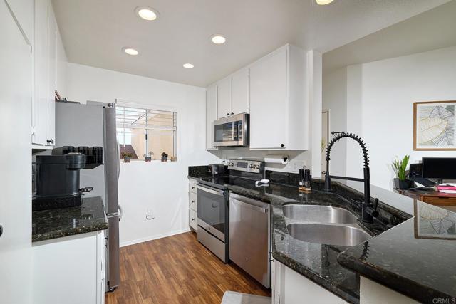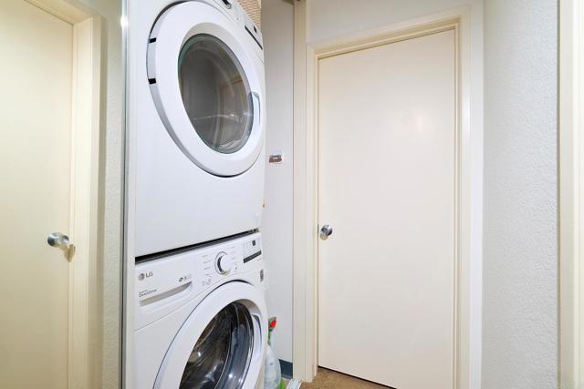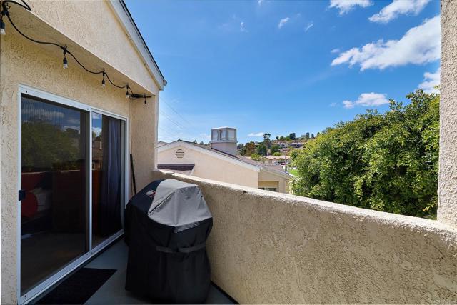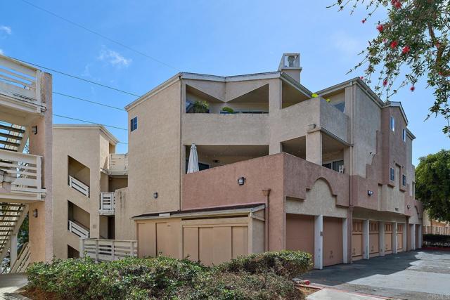 Welcome to your private top-floor retreat at City Scene, a spacious and light-filled home offering an open floor plan with soaring ceilings and abundant natural light. This 2 bed, 2 bath corner unit sits on the 3rd floor with no neighbors above and only one shared wall--total privacy and peace. The living, dining, and kitchen areas flow seamlessly, with a cozy gas fireplace in the living room. The modern kitchen, with a new stove, microwave, refrigerator and dishwasher, is perfect for entertaining or relaxing at home. The split-bedroom layout provides ultimate privacy, with a generous primary retreat featuring ample closet space and an en-suite bathroom. Sit outside and enjoy morning coffee on your own private balcony that’s accessible from both bedrooms and the living room. Bonus perks: newer air conditioning unit, in-unit laundry with newer stackable washer/dryer, side-by-side two-car garage, access to a resort-style pool, spa, and gym, and HOA assessment will be paid at close of escrow. Conveniently located with easy freeway access, you'll be minutes from Mission Valley's shopping, dining, and entertainment, as well as USD, SDSU, and San Diego's beautiful beach communities.
