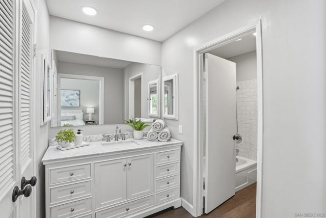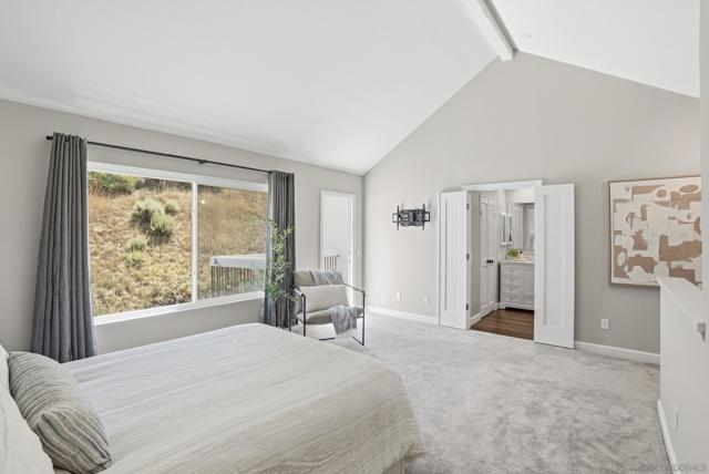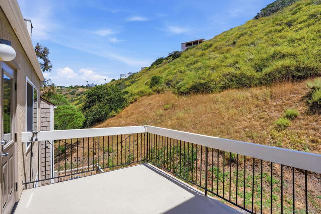 Premier end-unit on a quiet cul-de-sac in Canyon Haven, offering privacy and sweeping canyon and hillside views. Lives like a detached home with abundant natural light, 3 bedrooms, 2 bathrooms, 2-car attached garage, and separate laundry room. The main level features a living room with fireplace that opens to a private view patio. Extensively updated with new LVP flooring, fresh interior paint, and updated baseboards. The kitchen has been refreshed with painted cabinetry, new hardware, LED recessed lighting, and Bosch Dishwasher. The primary bath includes a new marble-top vanity and added French door entry. Outdoor improvements include a resurfaced lower deck and a fully rebuilt upper deck with added insulation. Community pool and spa and ample guest parking.Conveniently located near Pacific Beach with easy access to beaches, shopping, dining, trolley, and freeways.