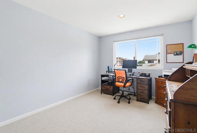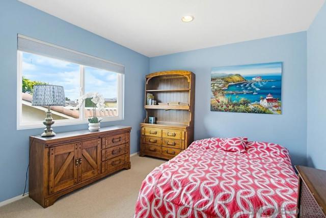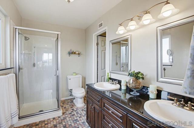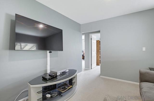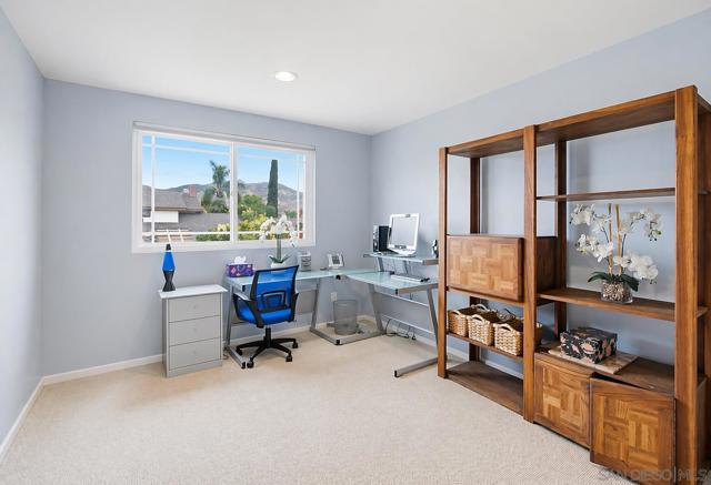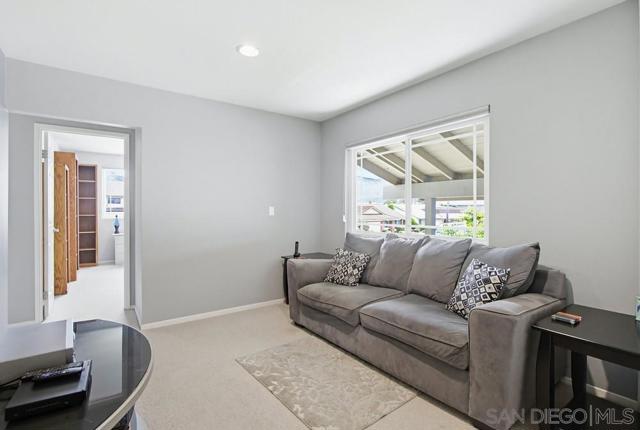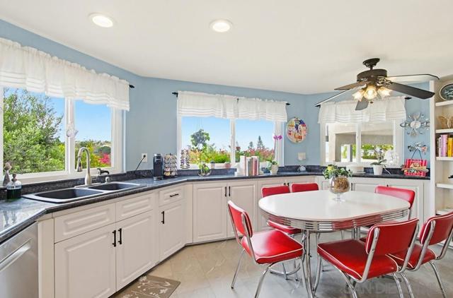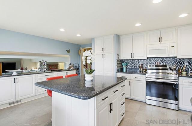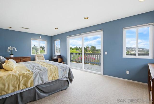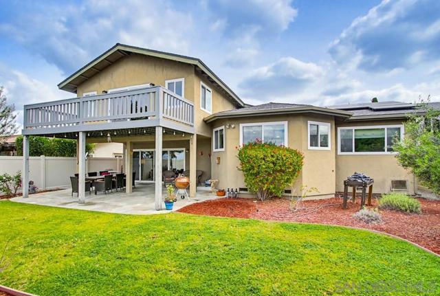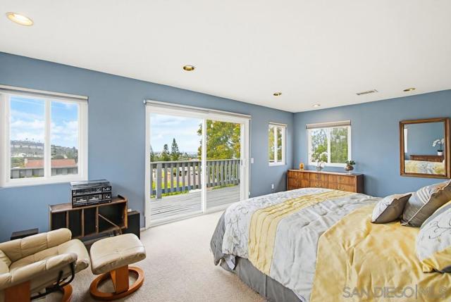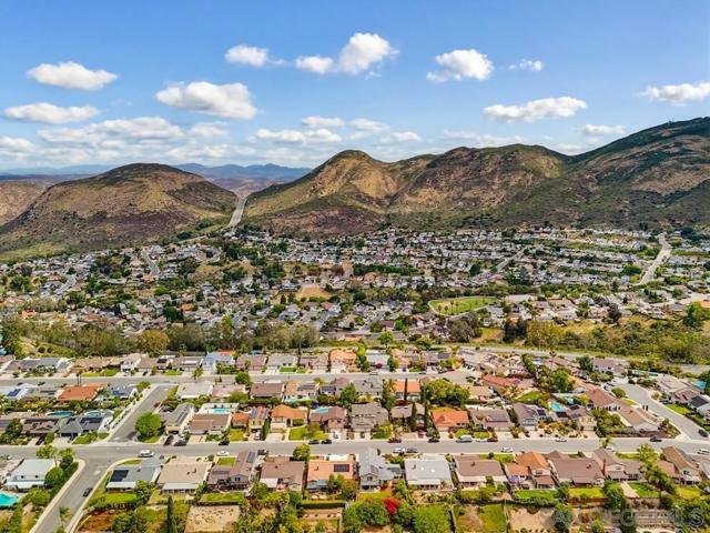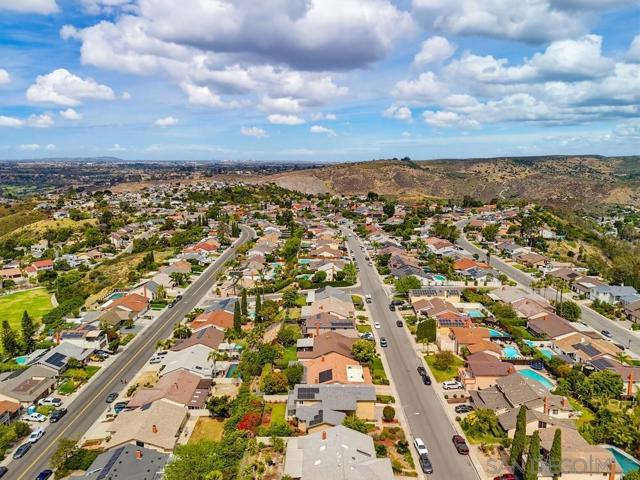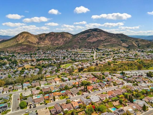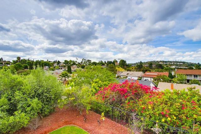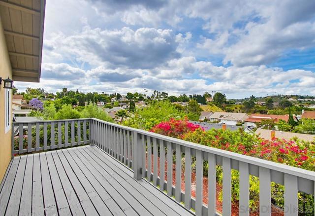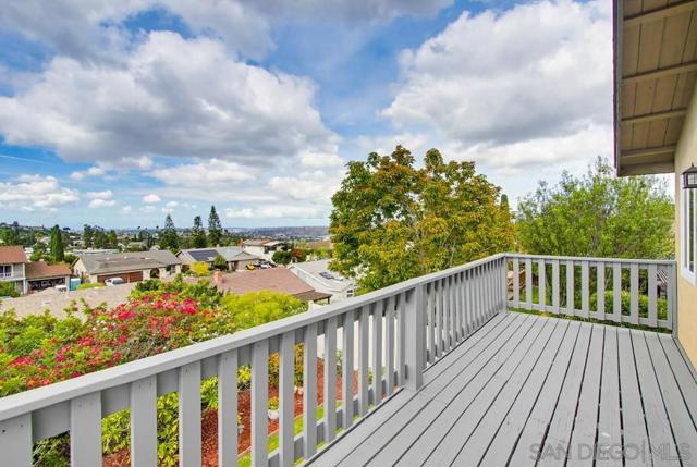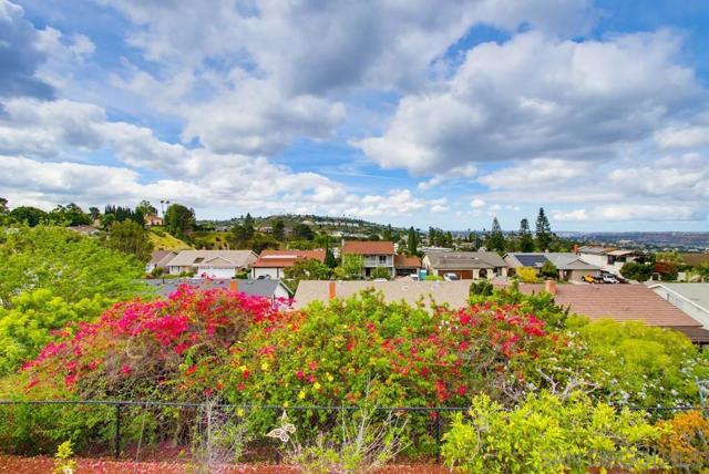 Rare opportunity in the heart of Del Cerro! Beautifully upgraded 6-bed, 3-bath home offering 2,824 sq. ft. of modern living. The expanded chef’s kitchen features stunning Blue Pearl granite,a center island,stainless steel appliances & updated finishes.This large kitchen also offers a charming kitchenette space near the windows,perfect for casual meals.The dining & living rooms showcase soaring vaulted ceilings,creating a bright & open atmosphere.The family room features a cozy fireplace and flows seamlessly to the backyard,ideal for indoor-outdoor living.A convenient main level bedroom & full bathroom provide flexibility for guests or multi-generational living.Expansive windows throughout the home capture beautiful views of Cowles Mountain & the surrounding landscape,bringing in natural light and a connection to the outdoors.Upstairs,the generous primary suite offers a private balcony with breathtaking west-facing views of the mountains,downtown & even the ocean.Additional upgrades include an owned solar system,newer HVAC,updated electrical panel,dual-pane windows w/updated coverings,upgraded balcony,newer kitchen flooring & updated appliances.The backyard is a private retreat with a covered patio and a mature orchard featuring tangerine, lemon, peach, and olive trees,perfect for relaxing or entertaining. Ideally located near Mission Trails Regional Park, this home offers easy access to hiking,nature & outdoor recreation.Enjoy close proximity to top-rated schools, Lake Murray, golf courses,shopping,dining & major freeways,offering the perfect blend of life.