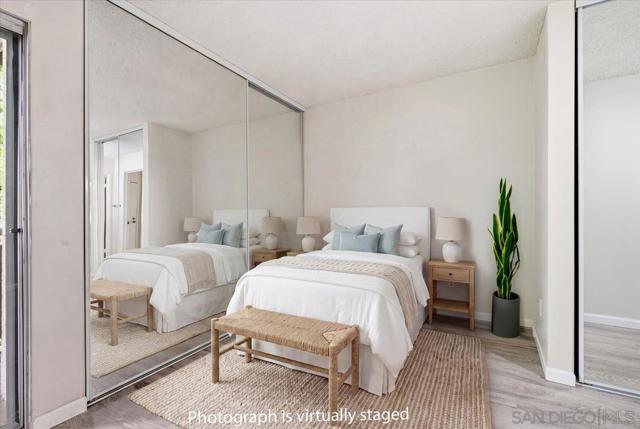 Directly in the heart of Mission Valley. Mission Village is a Very Walkable Community with tons of on site amenities including a Swimming Pool, Spa, Fitness Center, Tennis Courts, Sauna, Game Room, On Site Laundry, Assigned Parking & Guest Parking. The unit has a private outside patio and open floor plan to maximize the living area. Turn Key Move in Ready.