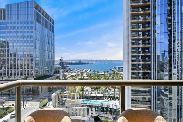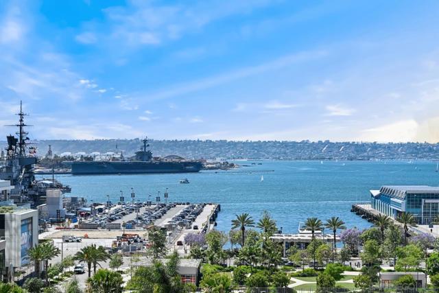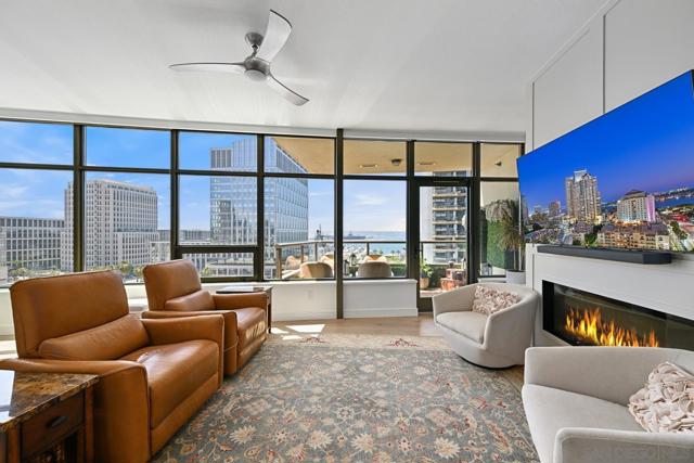 Sophisticated and seldom available, this southwest corner residence in the iconic Electra Building features 2 bedrooms, 2 baths, and a versatile bonus room perfect for a third bedroom or home office—your chance to enjoy the ultimate “corner office” with stunning bay and city views. Thoughtfully redesigned with over $260,000 in upgrades, this bright, open home is wrapped in expansive windows that capture panoramic vistas from every room. A private west-facing terrace provides the perfect setting for sunset skies and vibrant firework displays. The inviting living area is anchored by a cozy fireplace with custom built-ins, blending comfort with refined style. The kitchen is beautifully updated with quartz countertops, bar seating, a custom tile backsplash, and a built-in microwave—ideal for both entertaining and everyday living. The generous primary suite includes dual closets, one being a walk-in, and a luxurious remodeled bath with dual sinks, a walk-in shower, and a separate soaking tub. A full-size stacked washer and dryer adds convenience. Additional features include an oversized assigned parking space—suitable for two compact vehicles—complete with an EV charger, plus dedicated storage on the third floor. Residents enjoy access to the stunning restored historic conservatory with soaring cathedral ceilings, along with premium amenities such as 24-hour concierge service, a pool, spa, sauna, steam room, a fully renovated TechnoGym fitness center, and outdoor BBQ and dining areas. Come and experience upscale urban living in the heart of Downtown San Diego! Ideally located in the heart of Downtown, you are surrounded by all that makes living in San Diego great - Petco Park, bustling cafes, bars, boutiques, Balboa Park, the waterfront, Coronado Island, Little Italy, Gaslamp District and so much more!