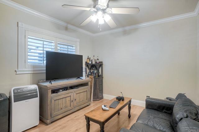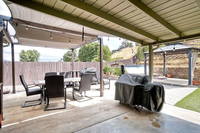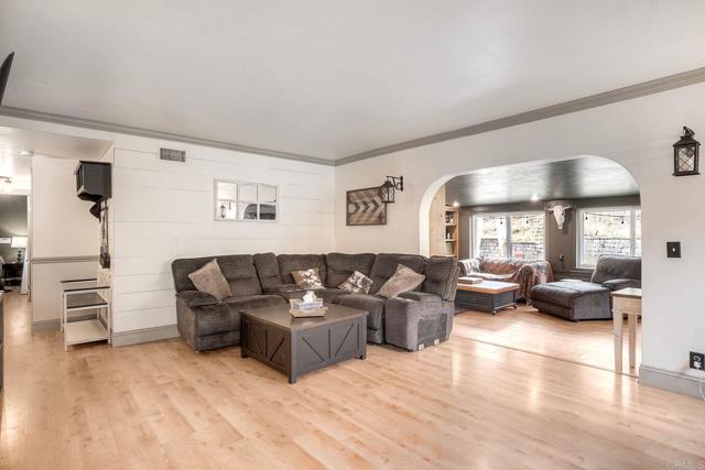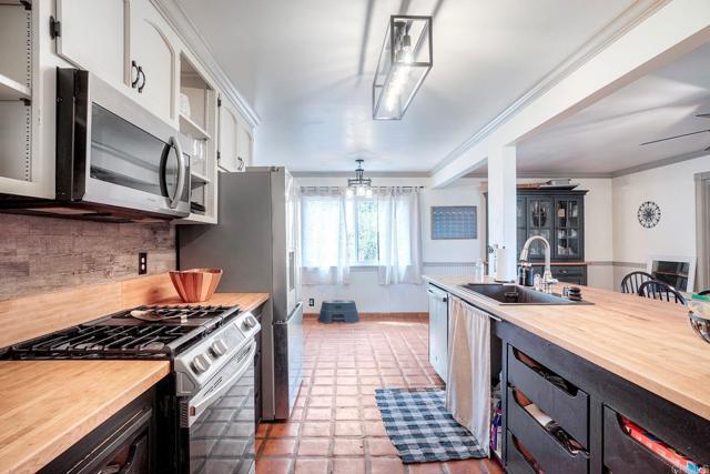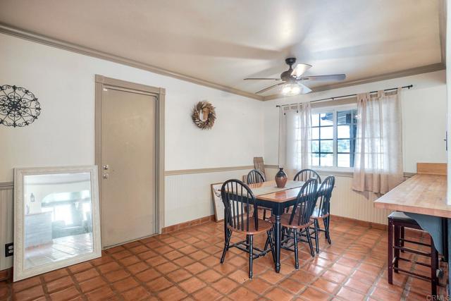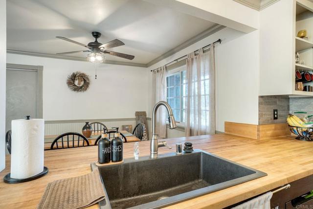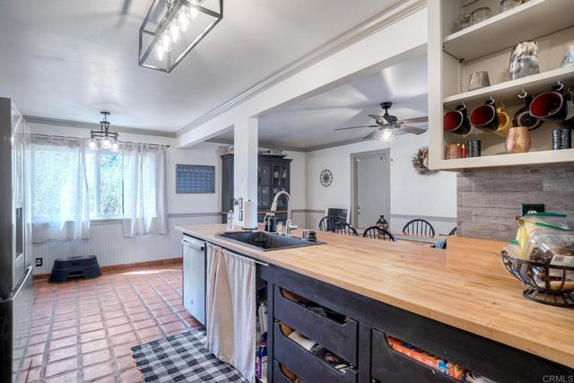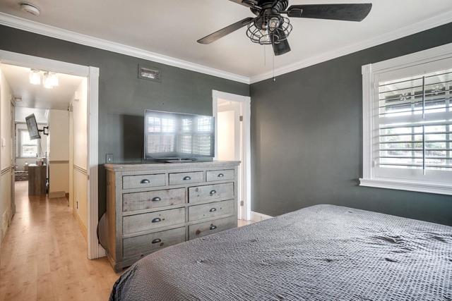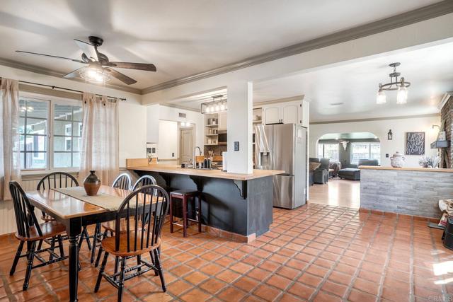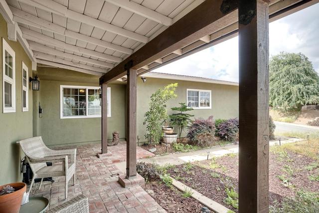 Must see this beautifully maintained, detached single-level home on a quiet, no-through-traffic street. Set on a generous 13,200 sq ft lot with space for RV/boat/trailer and no HOA. PAID-OFF solar system, newer roof and AC. Bright and private with oversized windows and ceiling fans in every room, this home offers three bedrooms and two updated bathrooms — the primary features a shower and the secondary was recently renovated to an elevated standard tub. Galley kitchen with open cabinets, stainless appliances, wood block countertop, bar stool area, dining area, custom paint and Saltillo tile flooring. The layout flows naturally from kitchen to living room to bonus sunroom and out to the covered back patio and spacious yard, ideal for entertaining. The living room features a beautiful rustic brick arched fireplace and mantel creating a warm and inviting space to relax and unwind. The spacious bonus sunroom provides additional flexible space for family entertainment or office. Potential to add an ADU/granny flat with proper permits. Beautiful home with great features, ready for your personal touches - don't miss this one!