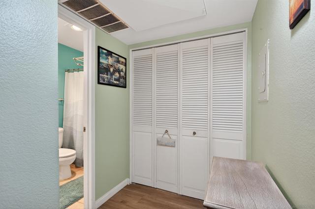 Quaint jewel of a one bedroom condo on the first floor featuring an exceptionally efficient floor plan layout for comfortable living. This home features all stainless steel appliances, granite countertops, luxury vinyl plank hard surfaced flooring in living room, dining room, and hallway, with tile in the bathrooms and carpeting in the bedroom, along with full sized washer & dryer, central AC & Heat. Located in the heart of Rancho San Diego in the highly desired Villa Monte Vina complex, this place offers Shopping, top tier schools, and restaurants all within a Hop, skip, and jump away from your doorstep. In addition, the complex features a wide array of amenities for you to enjoy including BBQ grill, tennis courts, pool, spa, guest parking, and a clubhouse.